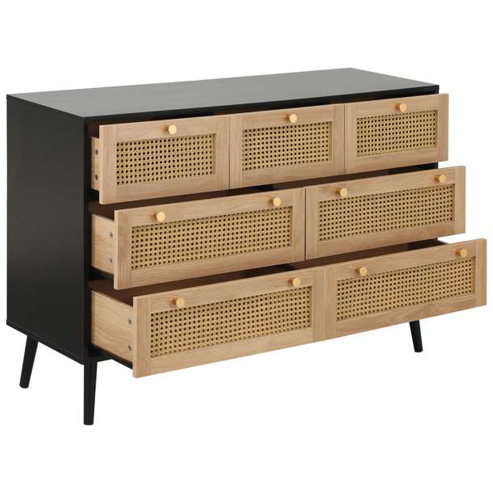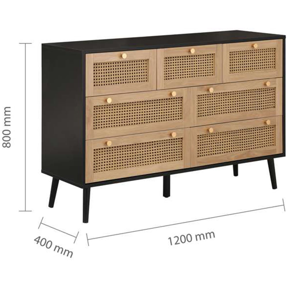 Croxley 7 Drawer Black and Oak Rattan Chest of Drawers