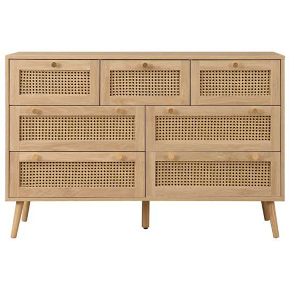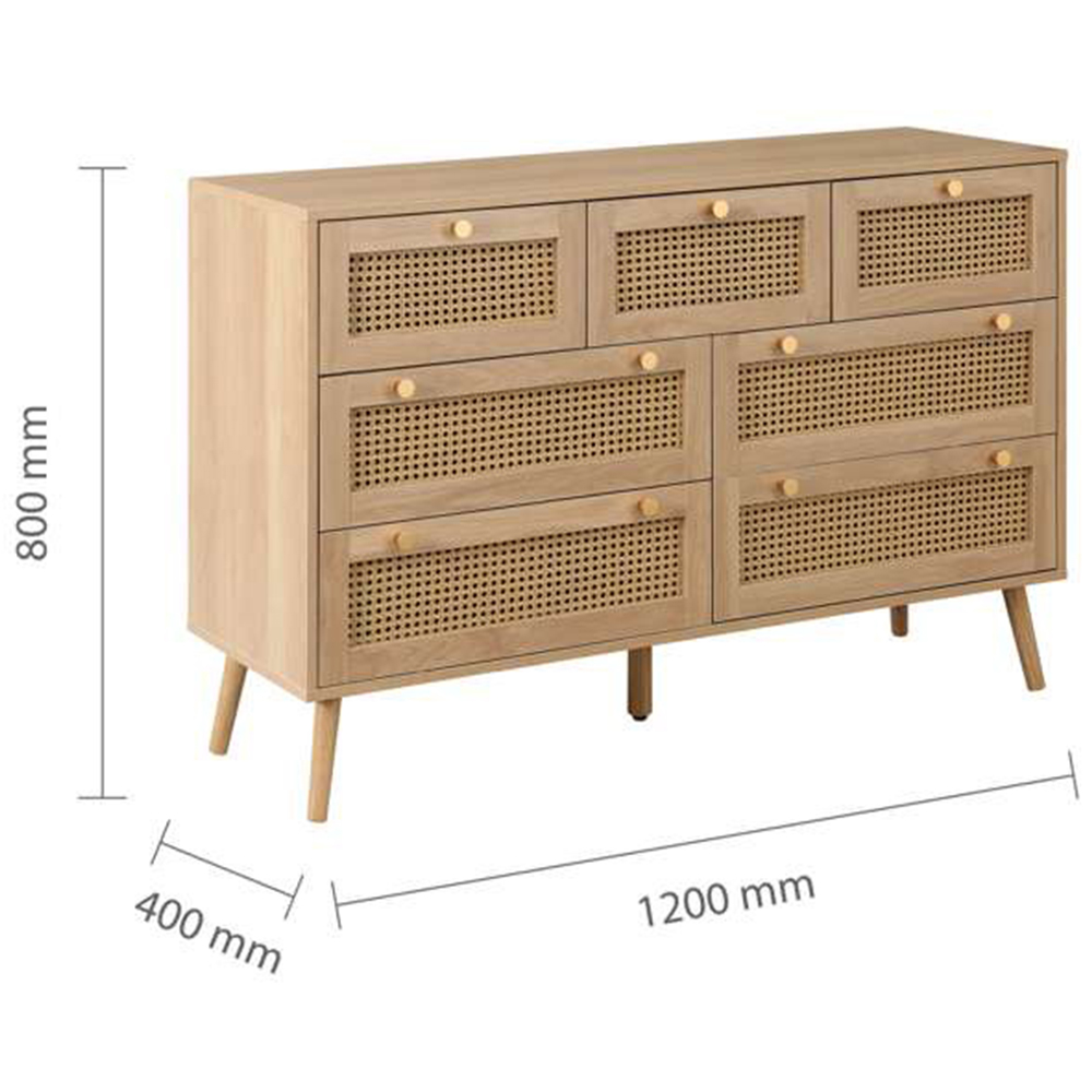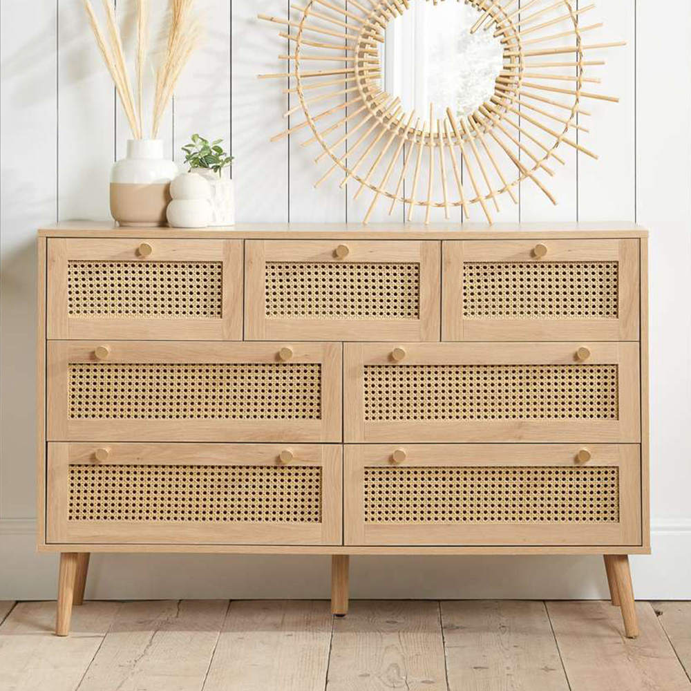 Croxley 7 Drawer Oak Rattan Chest of Drawers