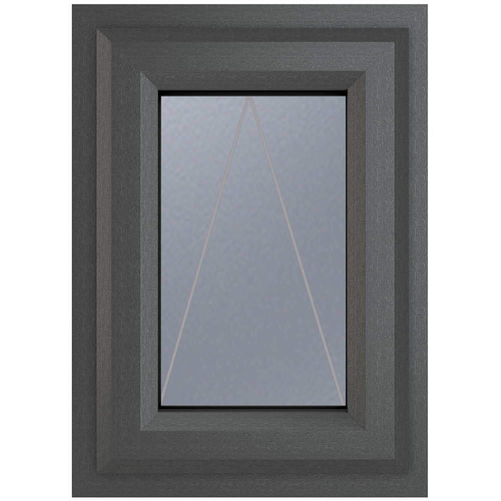 Transform your living space with the elegant Crystal uPVC Grey and White Top Hung Opener Obscure Triple Glazed Glass Window 440 x 610mm. The window is designed with triple glazing using a high-energy efficient glazing unit, resulting in an A+ rating window. It includes espag locking, trickle ventilation and comes with a handle, PVC cill, and glazing packers for easy installation. Please note that all product details are observed from the outside.