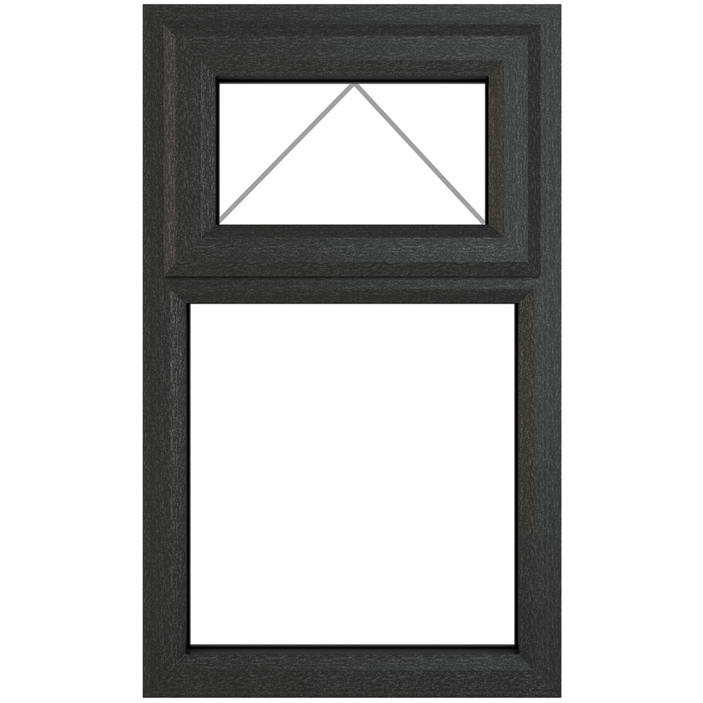 Upgrade your home with the stylish Crystal uPVC Grey and White Top Hung Over Fixed Light Clear Double Glazed Glass Window 610 x 1040mm, featuring an energy efficiency of 1.3 W/m²K. It includes an advanced espag locking system and a high-efficiency double glazing. The window also comes with a frame, glass, PVC cill, handle, and a trickle vent for optimal airflow, blending modern style with exceptional performance. The window with overall height, including the cill, measures 610 x 1040mm.