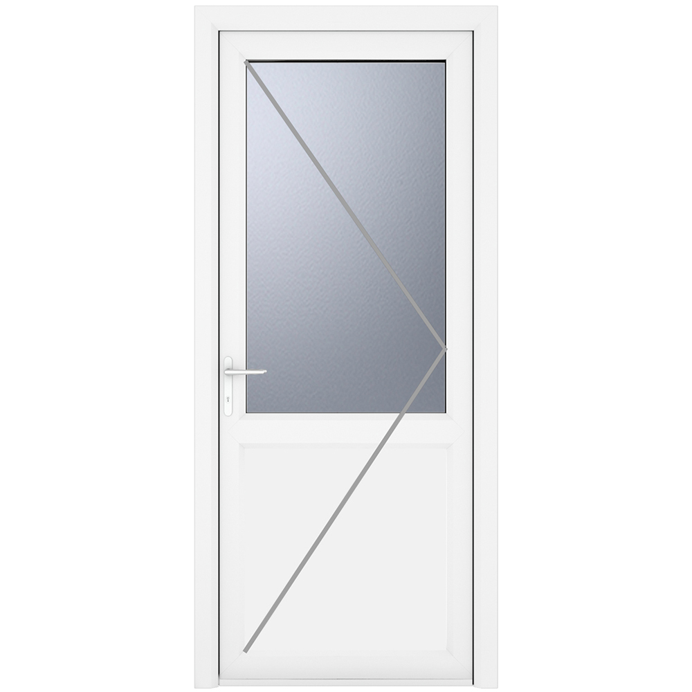 Crystal uPVC Triple Glazed Door Half Glass Half panel Right hand White Obscure Glass 890x2090mm