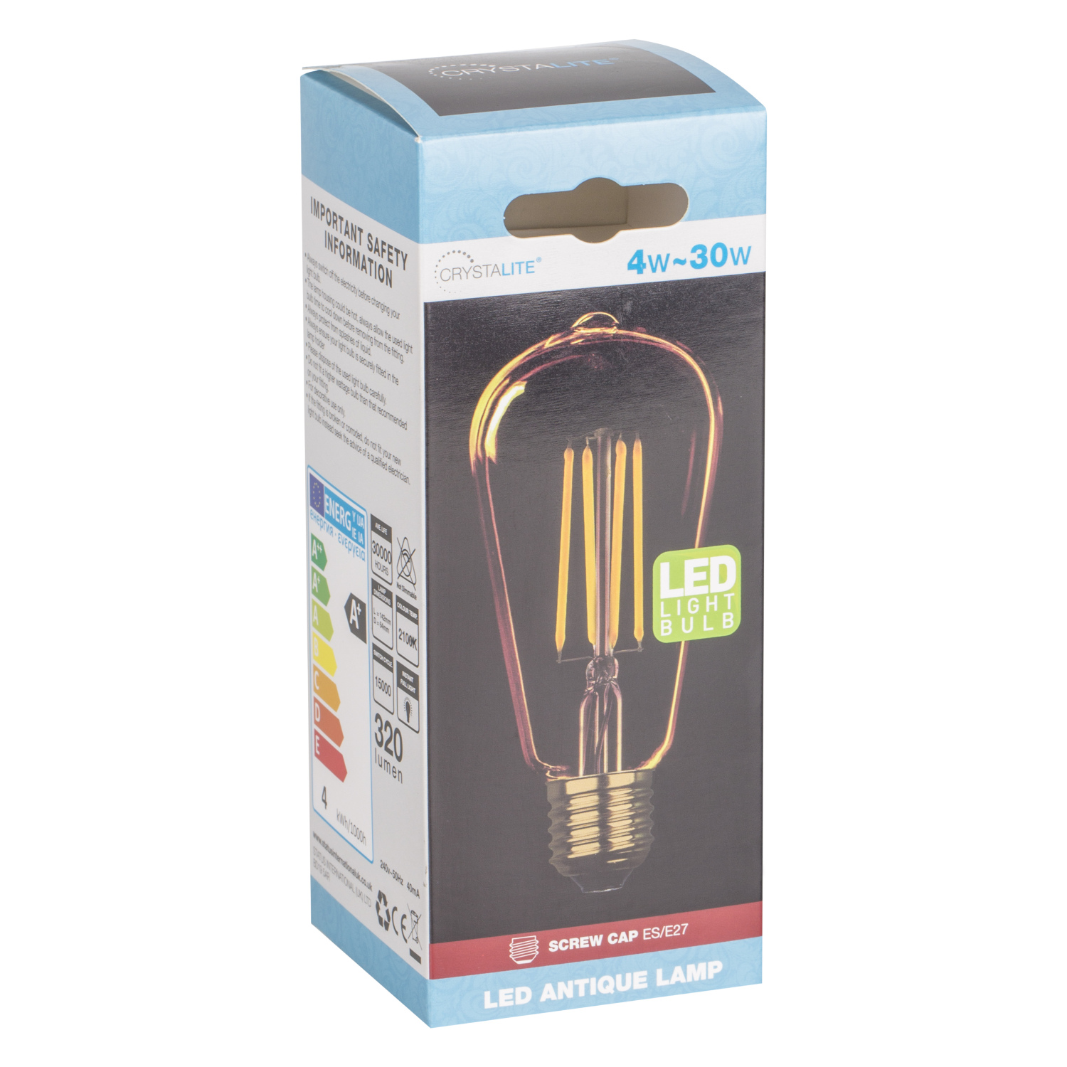 Beautifully vintage and industrial, this Crystalite Antique LED Golden Filament ES Bulb is both economical and stylish. With a gold-toned edison screw fitting, this bulb brings a warm light to your space whilst boasting attractive antiquity.