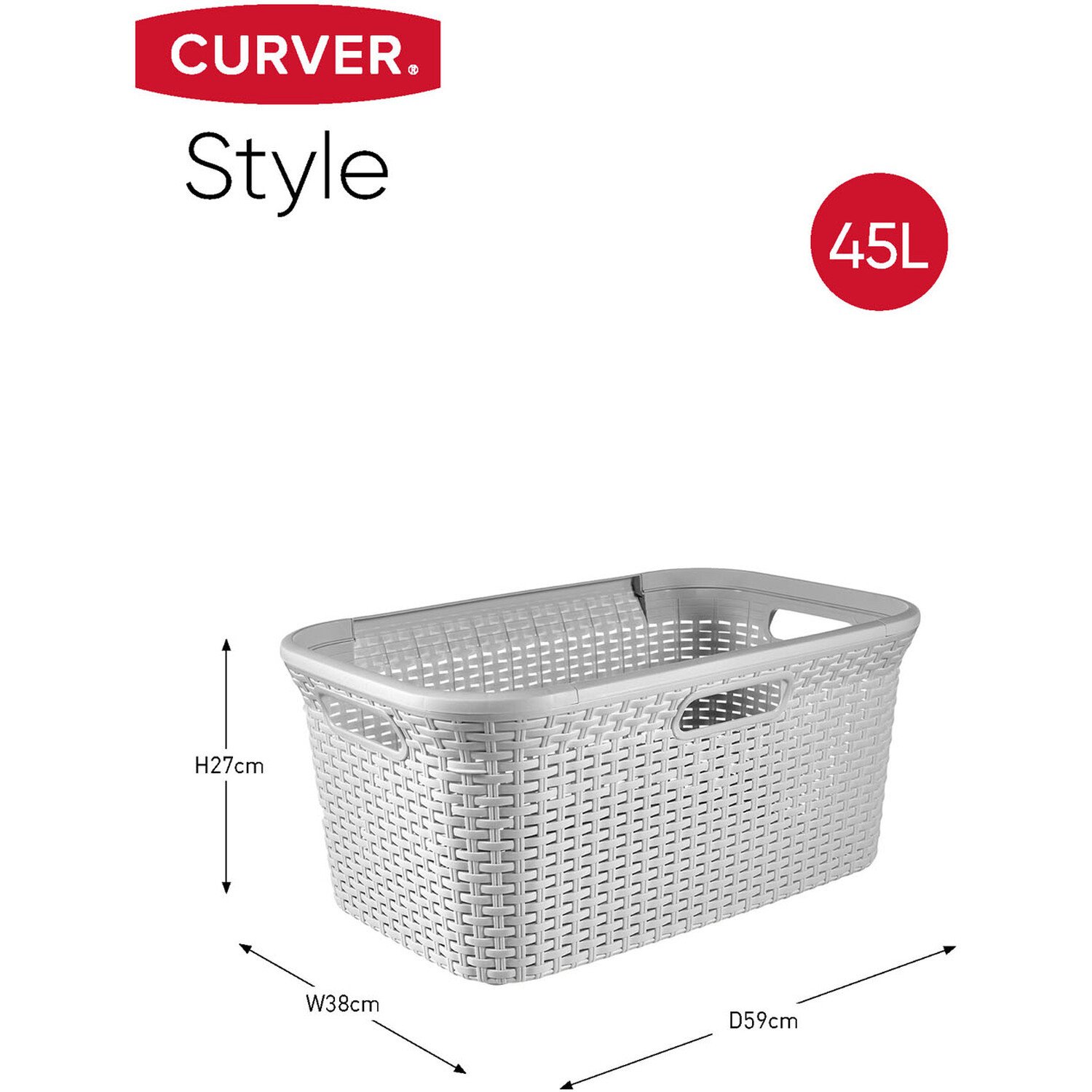 Ideal for holding your laundry, this Curver Grey Laundry Storage Basket 45L is crafted from hardwearing plastic to create a natural fibre look. Durable and sturdy, this Curver rattan laundry basket comes complete with three handles to enable you to hold it with both hands or with one hand resting the basket against your hip. Ideal for carrying your laundry or to keep your laundry clean until ironing day, this plastic basket is lightweight and easy to clean. It is long lasting due to being made from plastic and will keep your clothes damp and odour free.