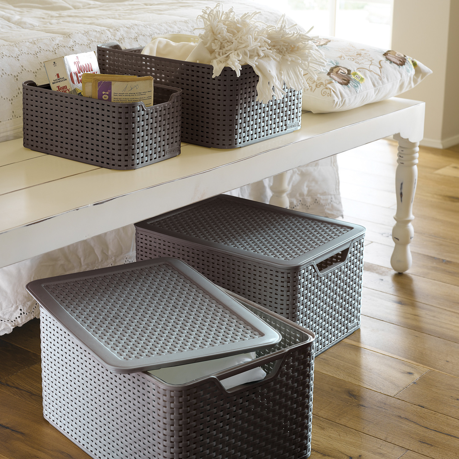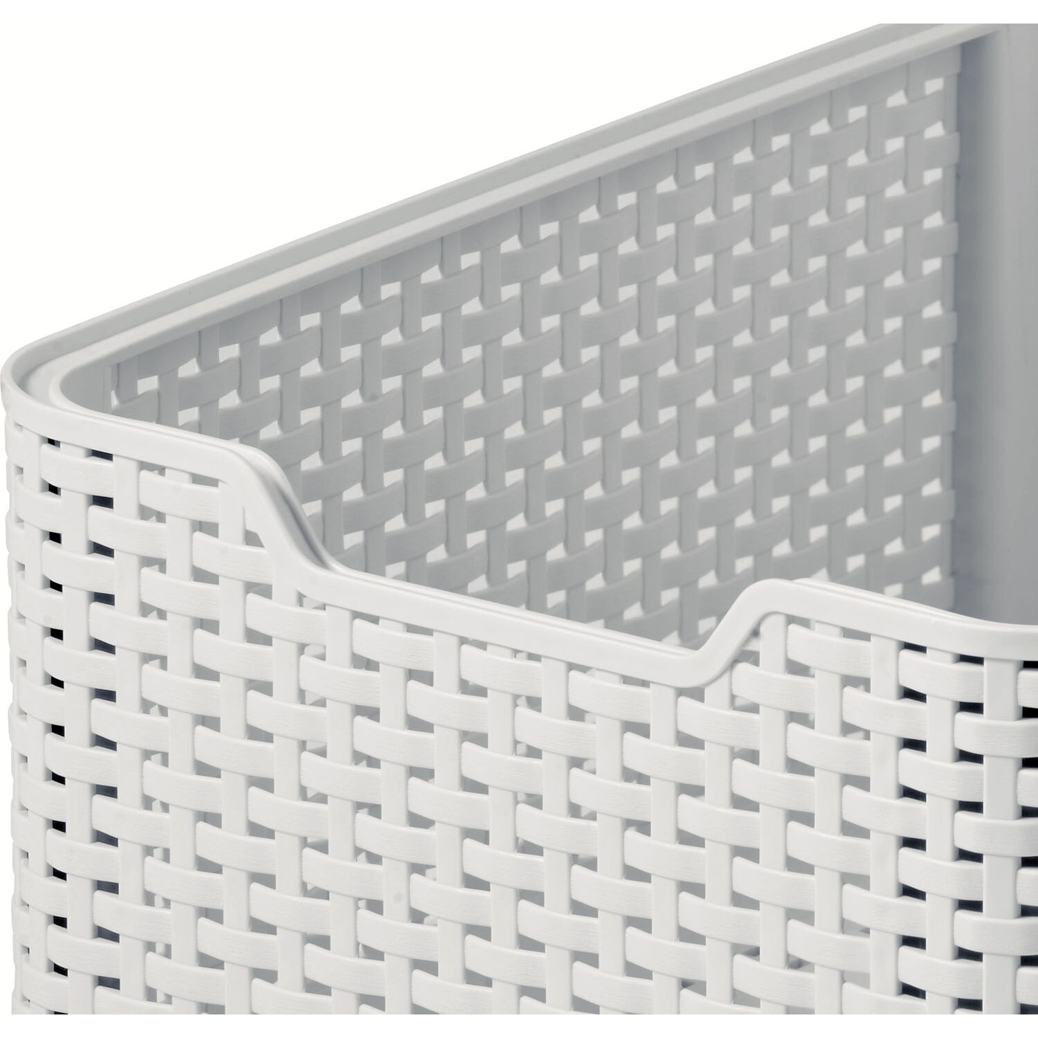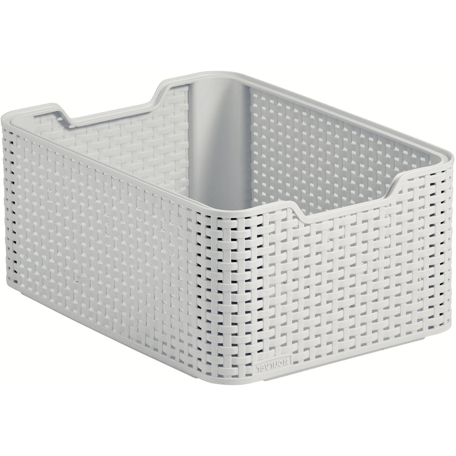 Add a rustic touch to your home with this stylish and practical Curver Grey Storage Basket 18L. A great storage solution to your home, this basket is made from durable hard-wearing plastic and finished with a rattan effect. This basket adds character to your home without the worry of mould, snags and odours. Perfect for DVD's, CD's, magazines or miscellaneous items that you find floating around your home.