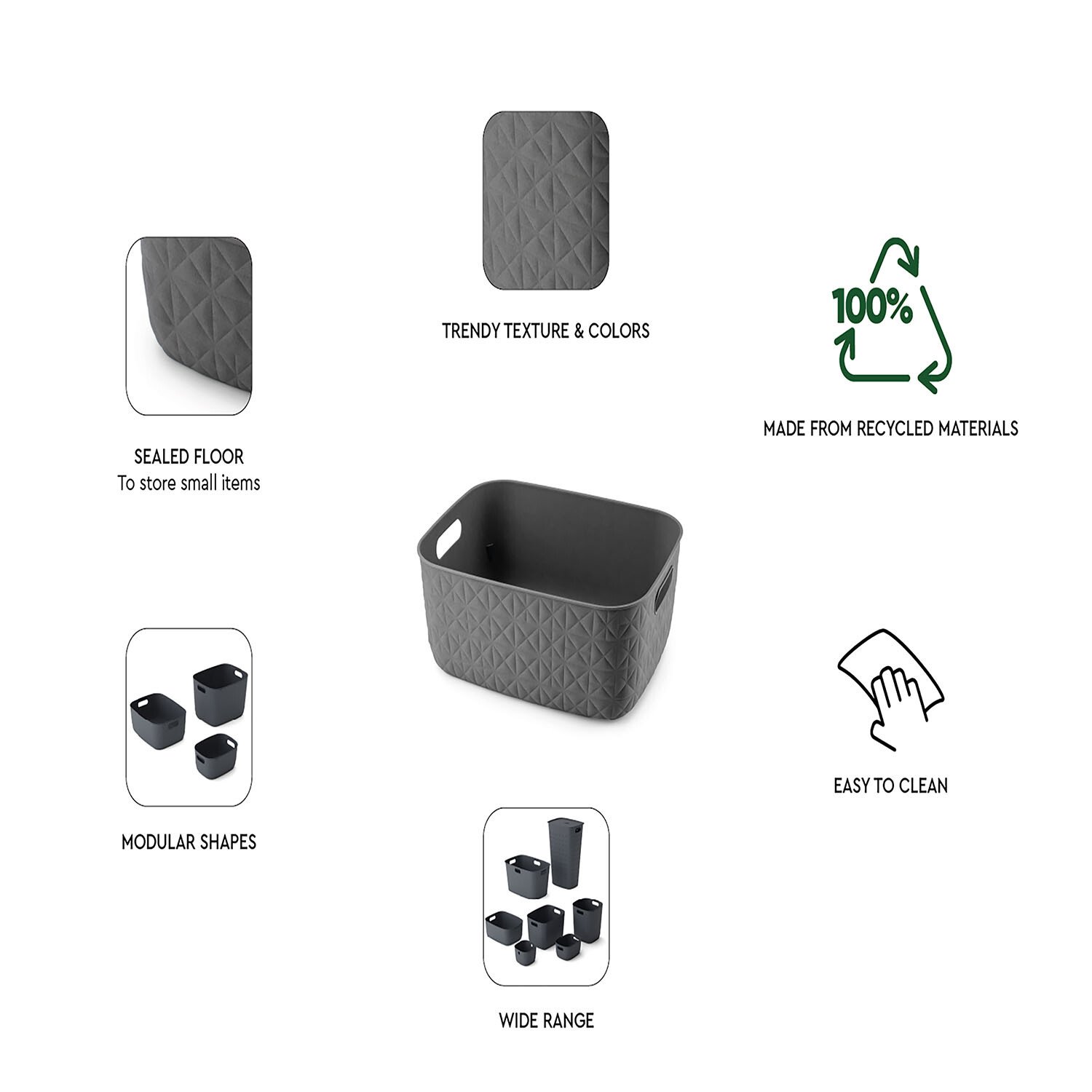 Organise your space with the Curver Softex Basket Grey. This versatile storage basket is ideal for your office, kitchen, bedroom, bathroom, or any living area. With its soft texture and modern grey shade, it complements contemporary any setting. Lightweight, easy to clean, and designed for convenient nesting, it makes a practical addition to your daily organisation needs.