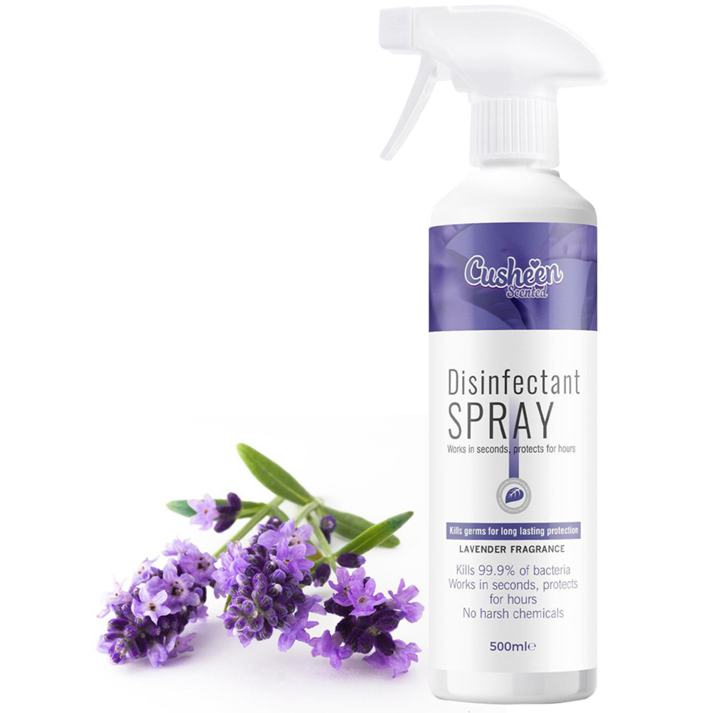 4 Pack Cusheen Lavender Scented Disinfectant Spray, 500ml. A blend of natural essential oils acts as an odour eliminator by creating a protective layer on the water's surface. The scent is released in a soft mist providing just the right amount of freshness. Keep nasty smells out of the bowl with Cusheen toilet spray. Doesn't mask but truly cleans away tough lingering odours. Simply squeeze and spray to release the preferred amount of spray in a sweeping motion. Key Features : Blend of oils and natural ingredients NO harsh chemicals, aerosol, parabens, phthalates, or formaldehyde Kills 99.9% of bacteria Works in seconds protect for hours. How to use it : Shake well before use. Simply give a few sprays directly onto the surface.