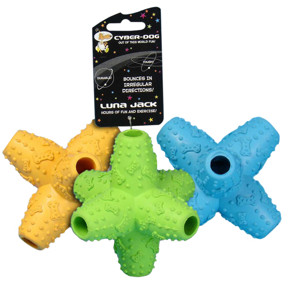 Give your dog a treat that's out of this world with the Cyber Dog Lunar Jack. The unique design causes this toy to bounce irregularly, adding an extra touch of unpredictable fun to your game of fetch. Your pooch won't know where it will go next and will have hours of fun chasing it around! You can even fill the points of the jack with treats to give your pooch and mental work out as well.