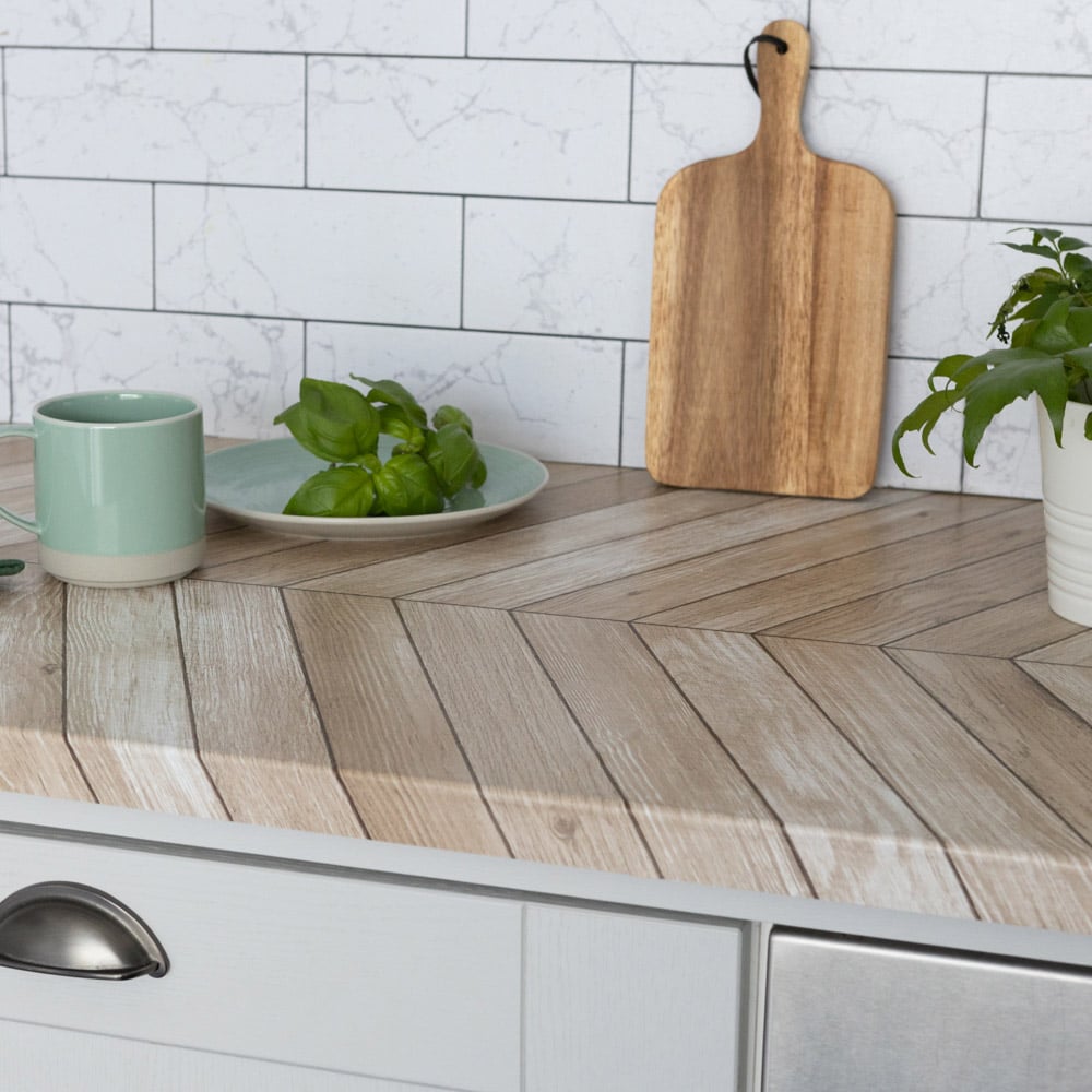 Upgrade your home decor with this classic Chevron Natural Vinyl Film by d-c-fix. With an authentic look, this vinyl film is a great DIY product for covering surfaces around the home, such as kitchen doors, work surfaces, and furniture items, to give them a whole new look. This high-quality, German-manufactured film is self-adhesive, making it easy to apply. It can be repositioned during the application, so if you make a mistake, simply peel it back and re-apply. With a modern oak chevron wood effect feel, this film comes with a sticky back that can be removed, making it ideal for tenants. This film measures 67.5 x 5m in size and is heat resistant to 70°C and comes with a durable wipe-clean surface means it's easy to keep clean. Always remember to use mats for hot pans or food prep and seal around wet areas such as sinks and hobs with silicone for long-lasting use.