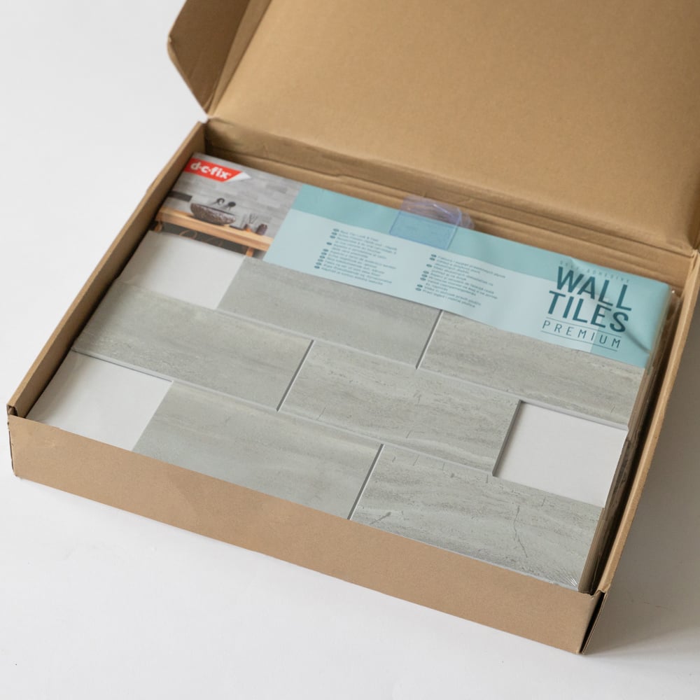 dc fix premium composite wall tiles provide a high-end look for kitchens and bathrooms without the expense, mess and hassle of conventional tiling. Dull or dated splash backs can be transformed in a few simple steps with no specialist tools or professional tilers required - no messy grouting either! Simply clean the surface, remove the backing paper, spray water onto the reverse of the tile and stick into place. Suitable for use over flat tiles or painted walls. To cut the tile just score with a utility knife and snap. The tiles interlock neatly so no grouting is required. The durable, water-resistant surface is easy to wipe clean with a damp cloth and household detergent..