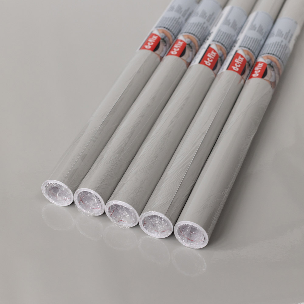 Transform the look of your room with the d-c-fix Glossy Light Grey Sticky Back Plastic Vinyl Wrap Film 67.5cm x 2m 5 Pack. A peel-and-stick vinyl film with a high gloss finish, this glossy light grey vinyl film will help you completely change the look and feel of your room or furniture. Plain vinyl films are ideal for covering surfaces around the home, such as kitchen doors, interior doors, desktops, coffee tables, dressing tables, chests of drawers and shelves. This high-quality, German-manufactured film is self-adhesive, making it easy to apply. The film can be repositioned during application, so if you make a mistake, simply peel back and re-apply. A great alternative to paint, vinyl wrap can be removed, making it ideal for tenants. It's heat resistant to 70°C, and its durable wipe-clean surface means it's easy to keep clean. It comes in a pack of five rolls. Size: 67.5cm x 2m.