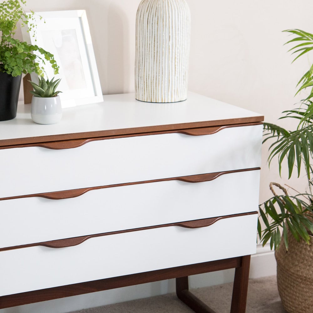 Transform the look of your room with the d-c-fix Glossy White Sticky Back Plastic Vinyl Wrap Film 67.5cm x 5m. A peel-and-stick vinyl film with a high gloss finish, this glossy navy blue vinyl film will help you completely change the look and feel of your room or furniture. Plain vinyl films are ideal for covering surfaces around the home, such as kitchen doors, interior doors, desktops, coffee tables, dressing tables, chests of drawers and shelves. This high-quality, German-manufactured film is self-adhesive, making it easy to apply. The film can be repositioned during application, so if you make a mistake, simply peel back and re-apply. A great alternative to paint, vinyl wrap can be removed, making it ideal for tenants. It's heat resistant to 70°C, and its durable wipe-clean surface means it's easy to keep clean. Size: 67.5cm x 5m.