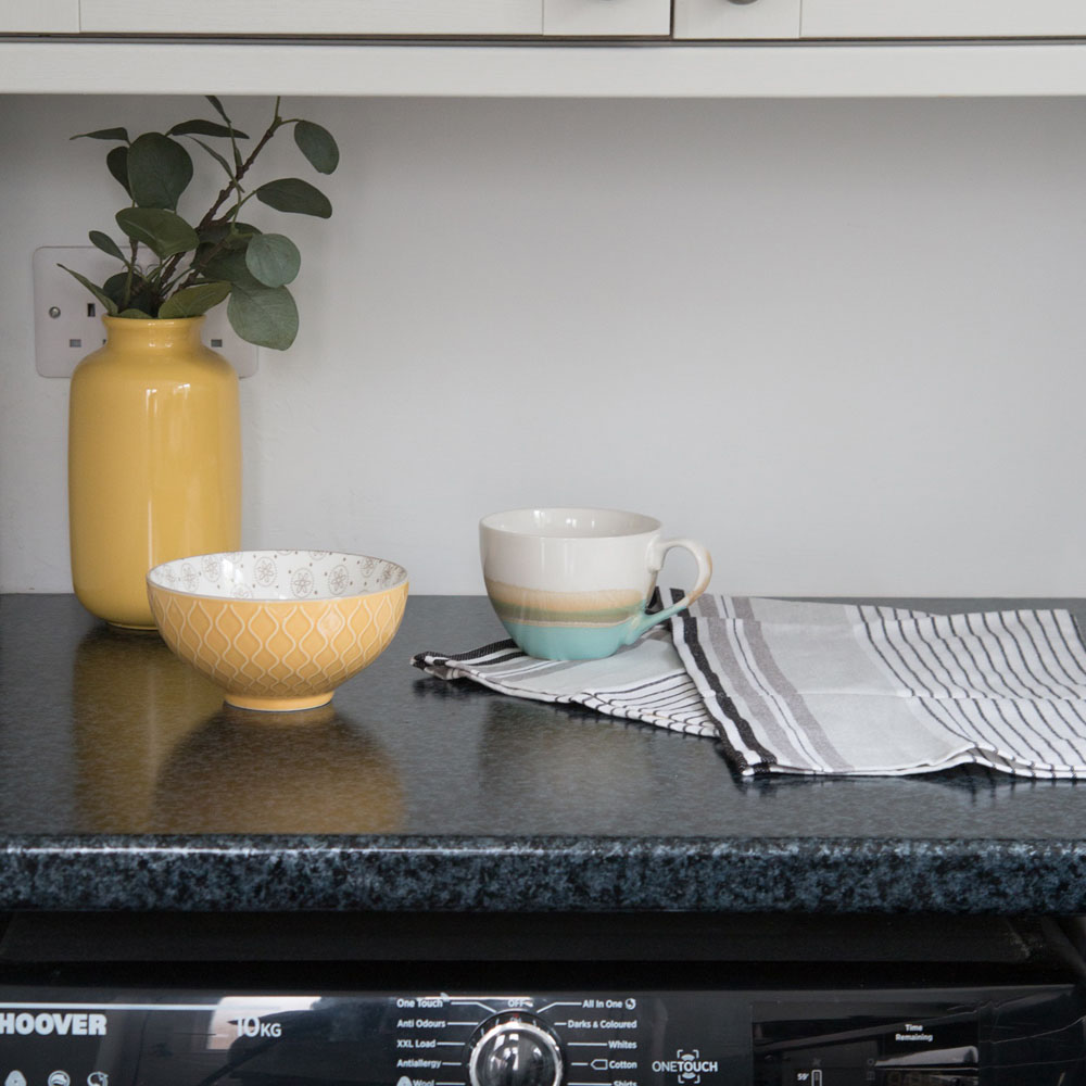 Restore worn-out surfaces with this d-c-fix Granite Black Sticky Back Plastic Vinyl Wrap Film. Stylish and functional, this is a peel-and-stick vinyl film with a black granite effect surface. The vinyl film is a great DIY product for covering surfaces around the home such as kitchen doors and work surfaces. Also, it is useful for shielding items of furniture to give them a whole new look on a budget. Easy to use, the high-quality German-manufactured film is self-adhesive, making it easy to apply. Plus, it can be repositioned during application, so if you make a mistake, simply peel it back and re-apply. For added convenience, the film can be removed, making it an ideal option for tenants. This vinyl wrap film is heat resistant to 70°C and comes with a durable wipe-clean surface for simple maintenance. Please note: Always use mats for hot pans and food preparation and seal around wet areas such as sinks and hobs with silicone. Size: 67.5cm x 5m.