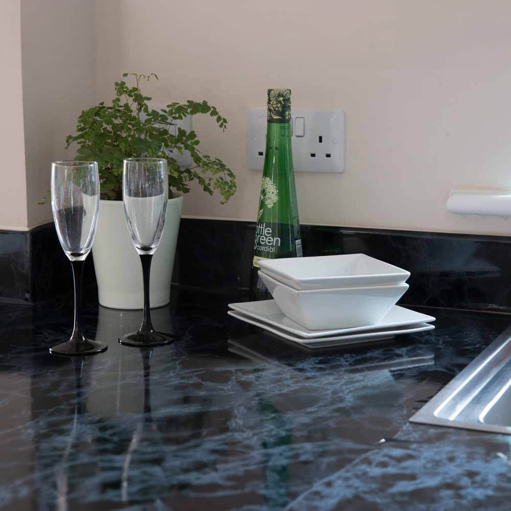 This d-c-fix self adhesive Marmi black film provides an instant solution for covering furniture, doors, glass, stationery or for art and craft projects. The high quality and durable film can be easily wiped clean and is heat resistant up to 75C making it an ideal cover for kitchen doors and worktops. Simply measure the area to be covered, cut to the size required using the handy grid on the backing paper, peel back the film and apply slowly to the surface, smoothing down as you go. Trim any excess film with a knife or use d- c-fix's application kit for a flawless finish. Made in Germany