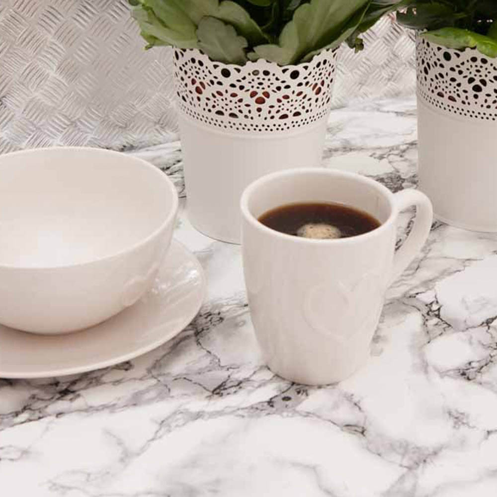 This d-c-fix self adhesive Marmi white film provides an instant solution for covering furniture, doors, glass, stationery or for art and craft projects. The high quality and durable film can be easily wiped clean and is heat resistant up to 75C making it an ideal cover for kitchen doors and worktops. Simply measure the area to be covered, cut to the size required using the handy grid on the backing paper, peel back the film and apply slowly to the surface, smoothing down as you go. Trim any excess film with a knife or use d- c-fix's application kit for a flawless finish. Made in Germany