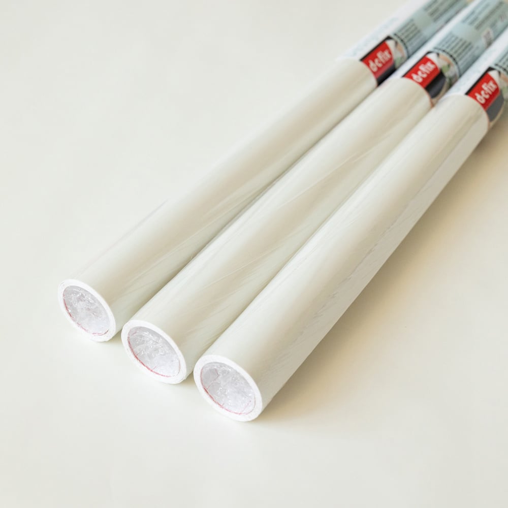 dc fix self-adhesive vinyl wrap is so easy to use, it's a perfect DIY product. Rejuvenate an item of furniture or wrap kitchen doors and surfaces for a whole new look in minutes. dc fix has a 5* rating for adhesion, opacity, light fastness, shrinkage and durability. The water based low tack adhesive allows the vinyl to be repositioned during application. Quick and easy to apply to clean, smooth flat surfaces. Simply remove the backing paper little by little and smooth into place, moving the smoother side to side to eliminate air bubbles. If you make a mistake, peel back and start again. The film is heat resistant to 70°C so OK for hot cups and plates but not hot pans. Always keep at least 12 inches away from naked flames and use a worktop saver for cutting, do not cut directly on the vinyl. Wipe clean with a regular household cleaner and wipe up spillages that may stain straight away (e.g. curry). Sticky back plastic is a non-permanent DIY solution for updating surfaces in the home, perfect for tenants and landlords looking for a quick, easy and budget-friendly way of updating kitchens on a budget. It's also perfect for upcycling items of furniture. The film is fully removable - use a hairdryer to soften the adhesive first and warm soapy water to remove any remaining residue. TOP TIPS 1) use a dc fix smoother for best finish 2) use the handy grid on the backing paper as a cutting guide 3) use a sealant around sinks and hobs 4) spray a little water on glossy surfaces like glass & appliances prior to application 5) a hairdryer can be used on curved surfaces to make the vinyl more pliable.
