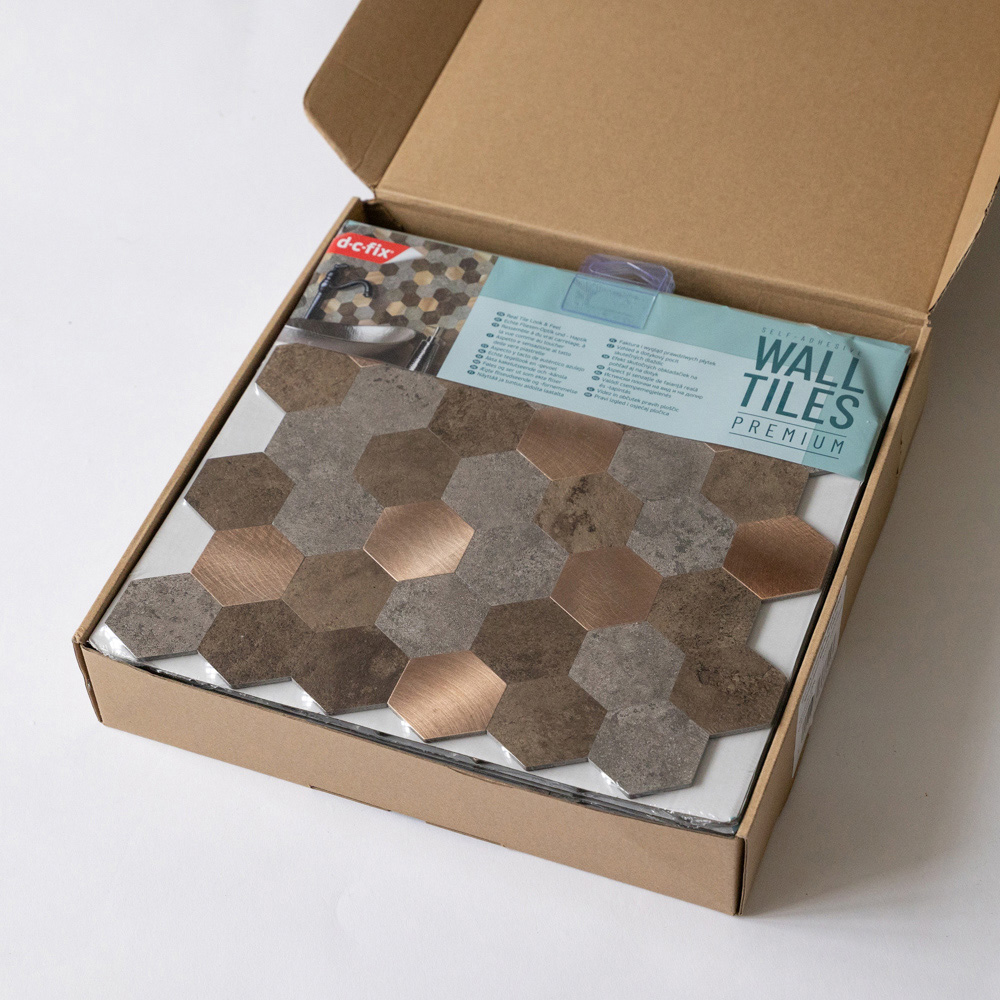 d-c-fix Metal and Stone Hexagons Self Adhesive Premium Wall Tile 288 x 29mm 10 Pack