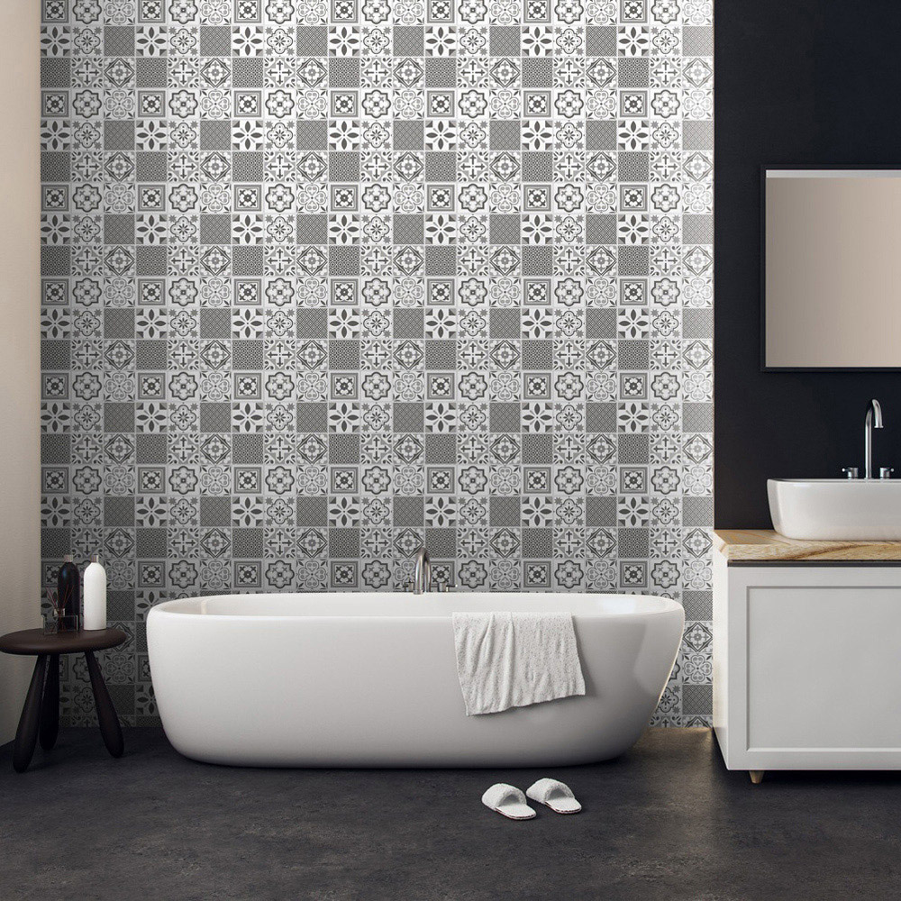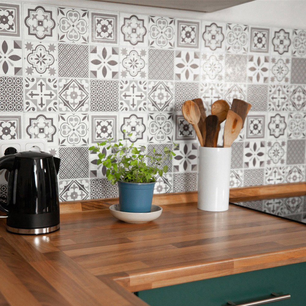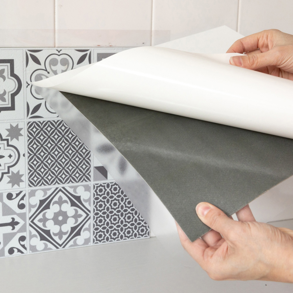 Upgrade your space effortlessly with the d-c-fix Oriental Sticky Back Vinyl Wall Tiles. Made from durable rigid vinyl, simply peel and stick over flat tiles or painted walls to create a stunning splashback feature. Each tile has a clear membrane, which forms a barrier behind the joins, preventing water from getting behind, making the tiles waterproof and ideal to be used around baths and in showers (remember to seal raw edges with silicone). No need for professional tilers or grouting; just butt join each tile together. To cut the tiles, just score with a utility knife and snap. It's never been so easy to give your kitchen or bathroom a quick DIY makeover. Size: 30.5 x 30.5cm. Pack of 18. Covers 1.68SQM.