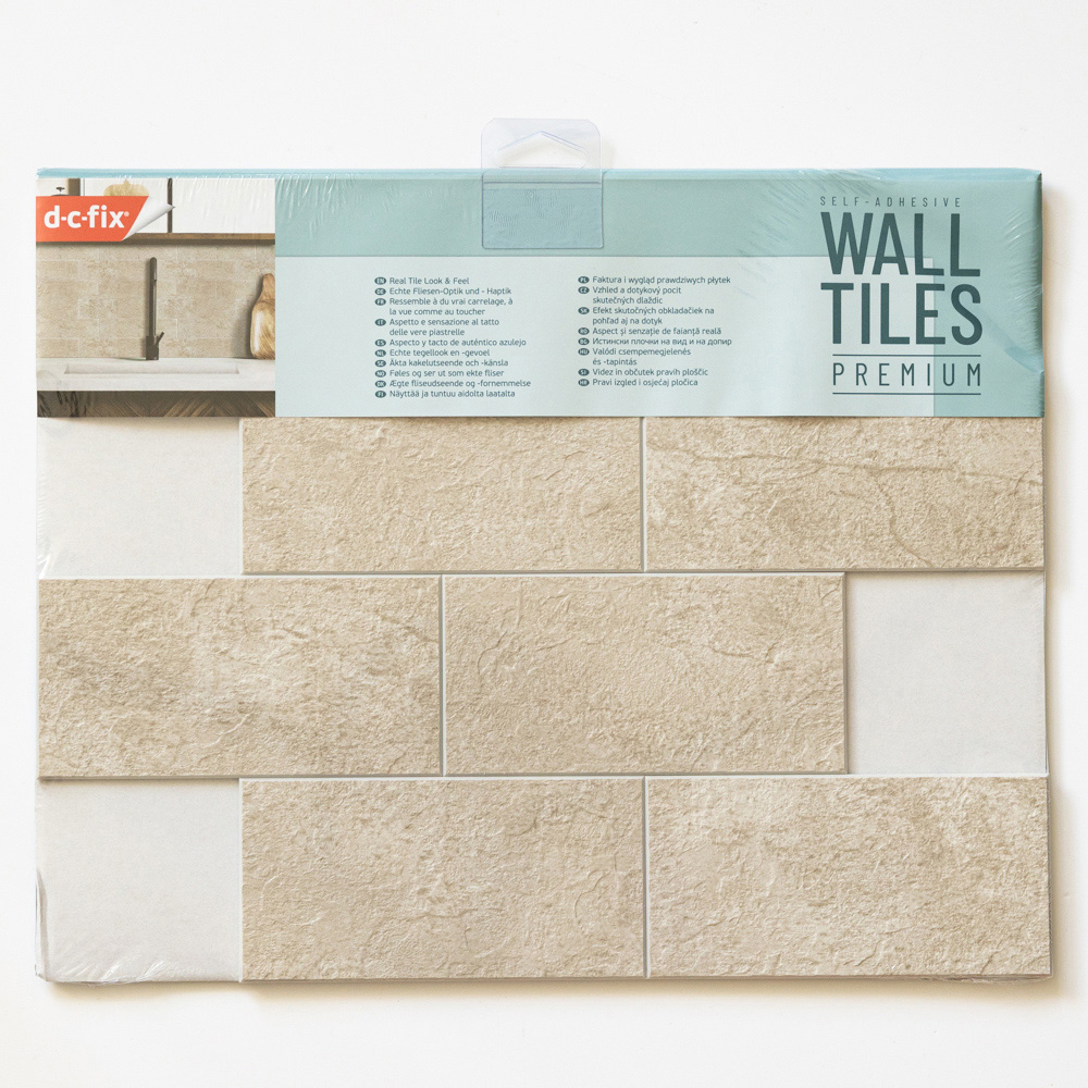 dc fix premium composite wall tiles provide a high-end look for kitchens and bathrooms without the expense, mess and hassle of conventional tiling. Dull or dated splash backs can be transformed in a few simple steps with no specialist tools or professional tilers required - no messy grouting either! Simply clean the surface, remove the backing paper, spray water onto the reverse of the tile and stick into place. Suitable for use over flat tiles or painted walls. To cut the tile just score with a utility knife and snap. The tiles interlock neatly so no grouting is required. The durable, water-resistant surface is easy to wipe clean with a damp cloth and household detergent..