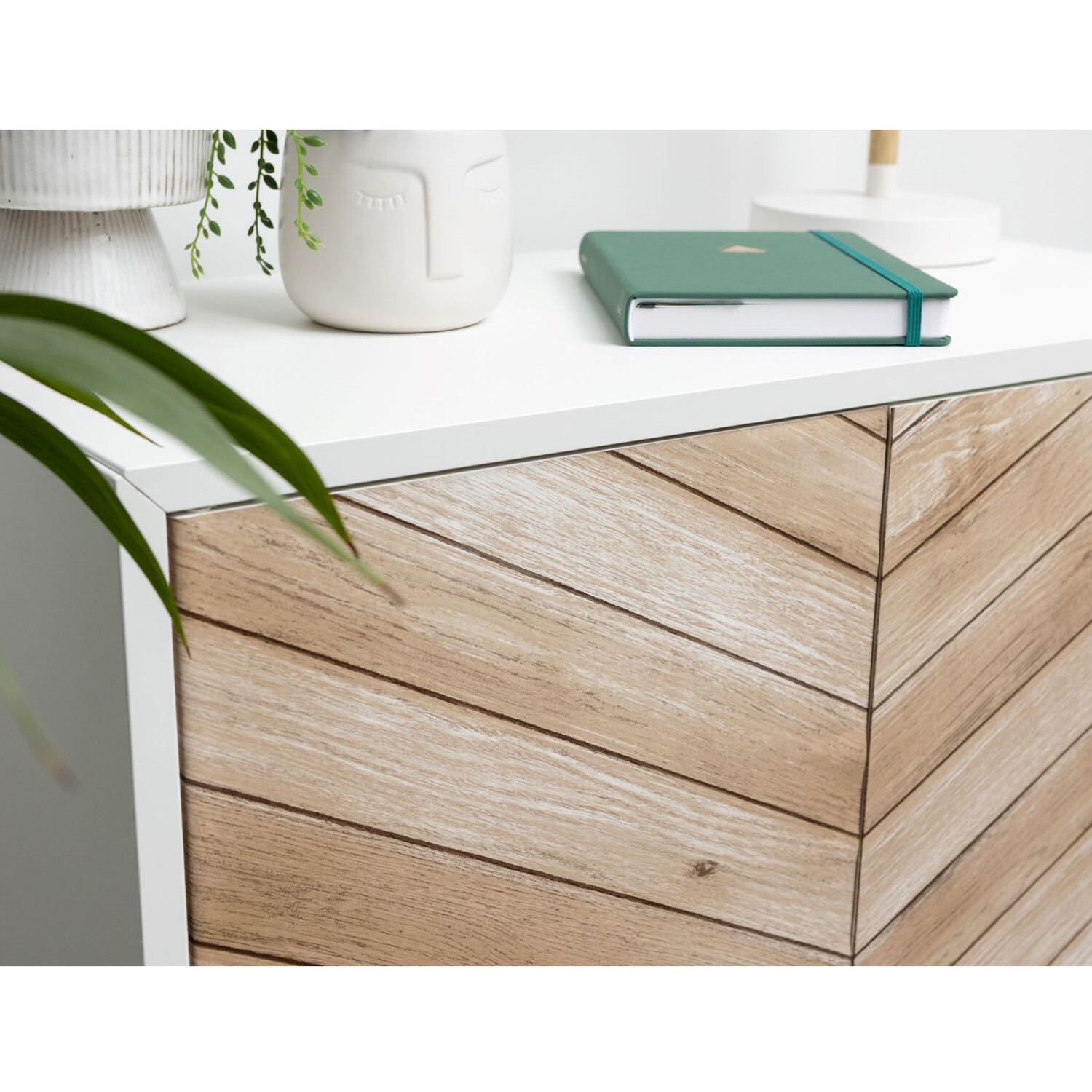 Give your space an easy upgrade with this d-c-fix Self Adhesive Chevron Wood Effect Vinyl Film. Easy to apply, this film has a trendy chevron wood effect, perfect for upcycling furniture, drawer fronts, desks and so much more. I can also be repositioned during application so you can perfect your desired look.
