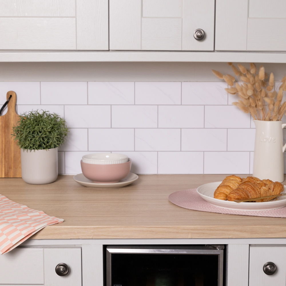 dc fix self-adhesive vinyl wrap is so easy to use, it's a perfect DIY product. Rejuvenate an item of furniture or wrap kitchen doors and surfaces for a whole new look in minutes. dc fix has a 5* rating for adhesion, opacity, light fastness, shrinkage and durability. The water based low tack adhesive allows the vinyl to be repositioned during application. Quick and easy to apply to clean, smooth flat surfaces. Simply remove the backing paper little by little and smooth into place, moving the smoother side to side to eliminate air bubbles. If you make a mistake, peel back and start again. The film is heat resistant to 70°C so OK for hot cups and plates but not hot pans. Always keep at least 12 inches away from naked flames and use a worktop saver for cutting, do not cut directly on the vinyl. Wipe clean with a regular household cleaner and wipe up spillages that may stain straight away (e.g. curry). Sticky back plastic is a non-permanent DIY solution for updating surfaces in the home, perfect for tenants and landlords looking for a quick, easy and budget-friendly way of updating kitchens on a budget. It's also perfect for upcycling items of furniture. The film is fully removable - use a hairdryer to soften the adhesive first and warm soapy water to remove any remaining residue. TOP TIPS 1) use a dc fix smoother for best finish 2) use the handy grid on the backing paper as a cutting guide 3) use a sealant around sinks and hobs 4) spray a little water on glossy surfaces like glass & appliances prior to application 5) a hairdryer can be used on curved surfaces to make the vinyl more pliable.