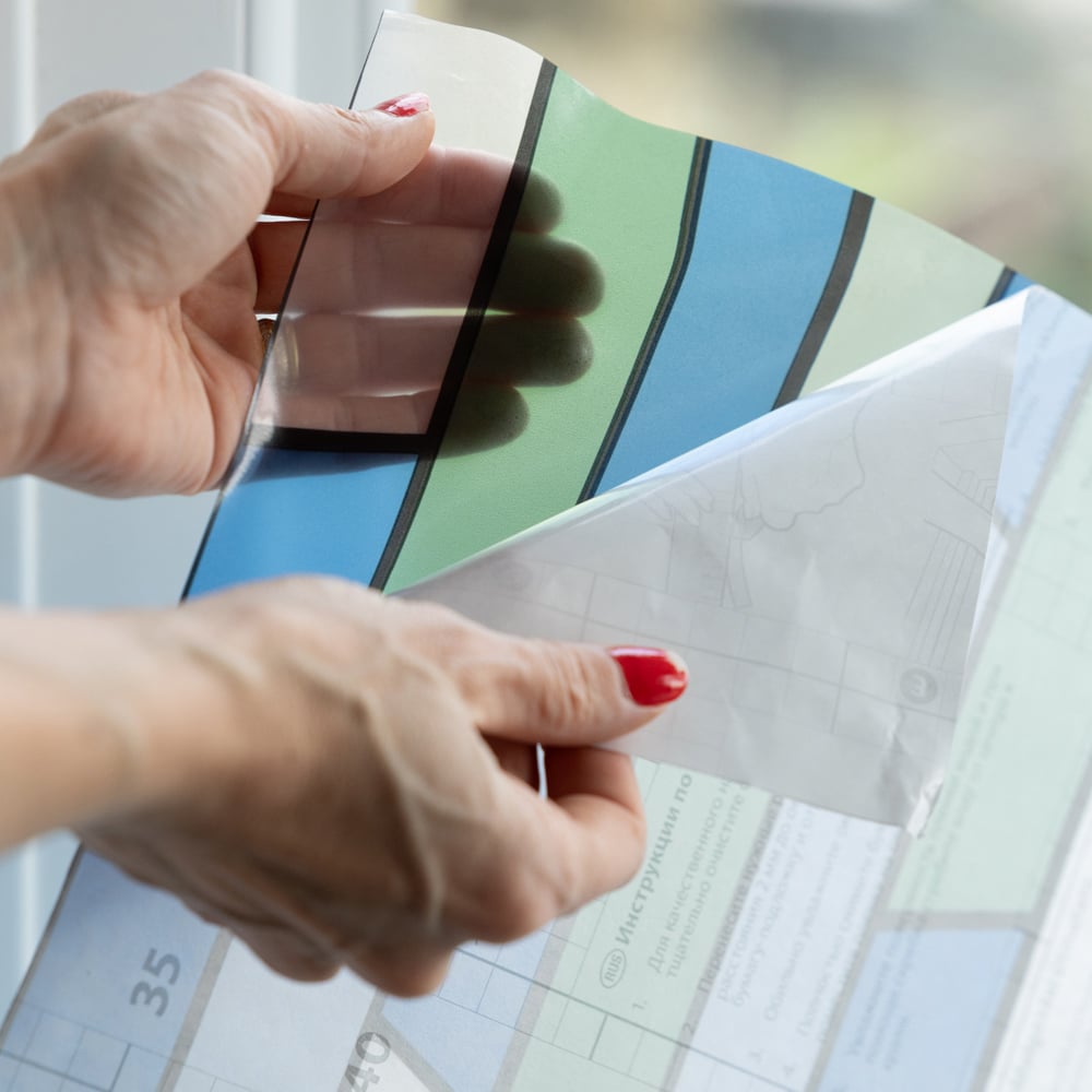 dc fix static cling window film provides privacy and décor for windows, glazed doors and even shower screens. Easy to apply using only water, the film sticks to the glass through static cling, so no adhesive is required and no sticky residue is left behind when removed - perfect for renters! A hygienic, easy-clean alternative to blinds, the film allows light in, reduces glare and provides 95% UV protection minimising fading of carpets and soft furnishings. To apply the film simply spray the glass surface with plenty of water, cut the film 2mm smaller than the area to be covered (to prevent overlapping the window seals), smooth into place and dry off excess water with a cloth. Ensure all edges are secure and 100% in contact with the glass. To remove, simply lift a corner of the film and peel away. It will come off in one go.