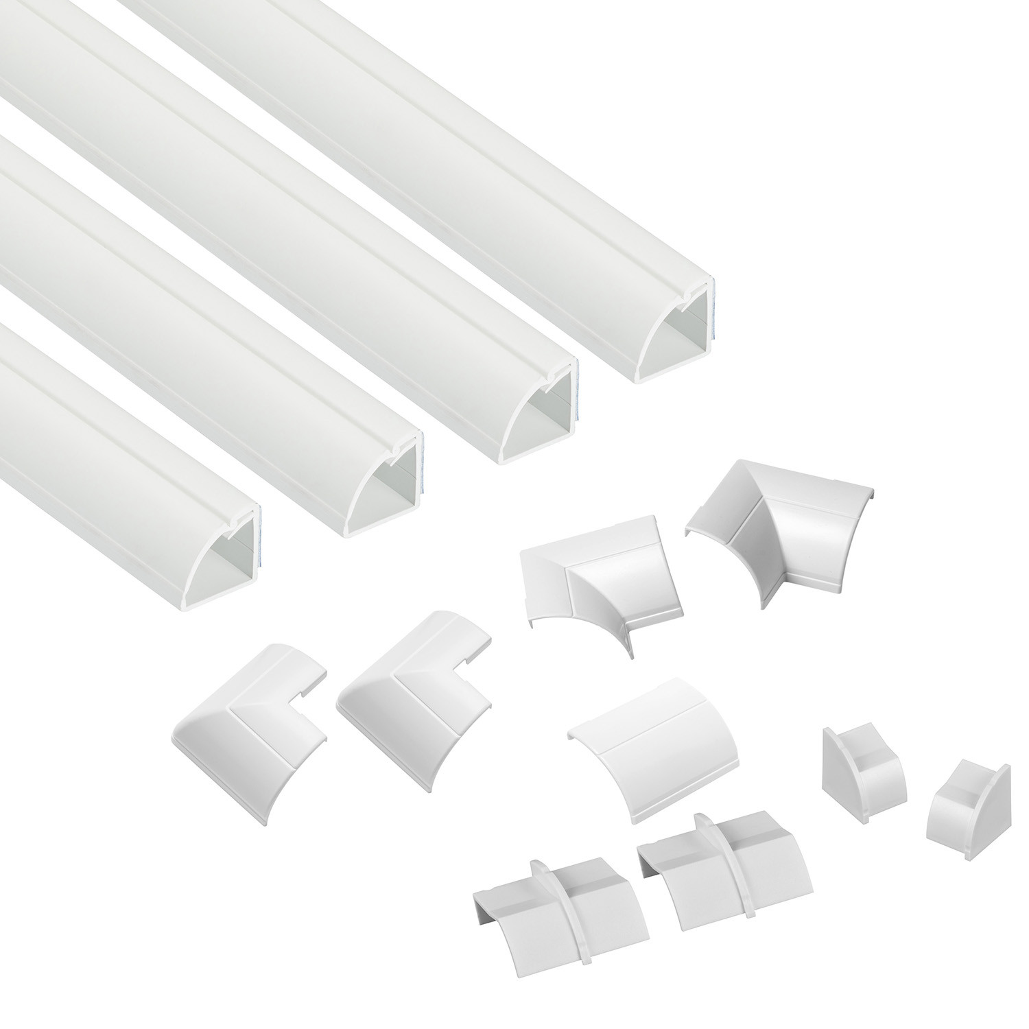 This D-Line Mini Cable Trunking 1-Metre Multipack is great for hiding cables above skirting boards as the -round shape can blend to resemble the natural top-section, while also offering a modern solution for vertical cable drops and runs across ceilings. All Lengths are also fully paintable, simply key the surface with a fine sandpaper & apply two coats of paint. Each Multipack contains: 3x 1-metre Lengths, 1x Flat Bend, 1x External Bend, 1x Internal Bend, 2x Connector, 2x End Cap