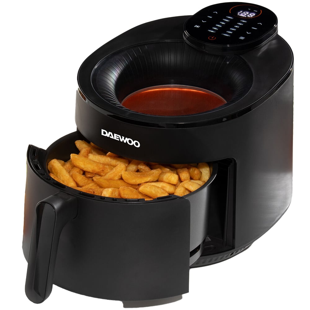 The Daewoo 5L Cyclonic Air Fryer cooks food 10% faster and more efficiently than a conventional air fryer. The fryer has a window on the top to allow you to see into the fryer to watch your food cook, and it has a simple, easy-to-use control panel with settings for roasting, baking, grilling, chicken, vegetables, and more! The air fryer is a great way to cook healthier meals with less oil quicker than an oven.