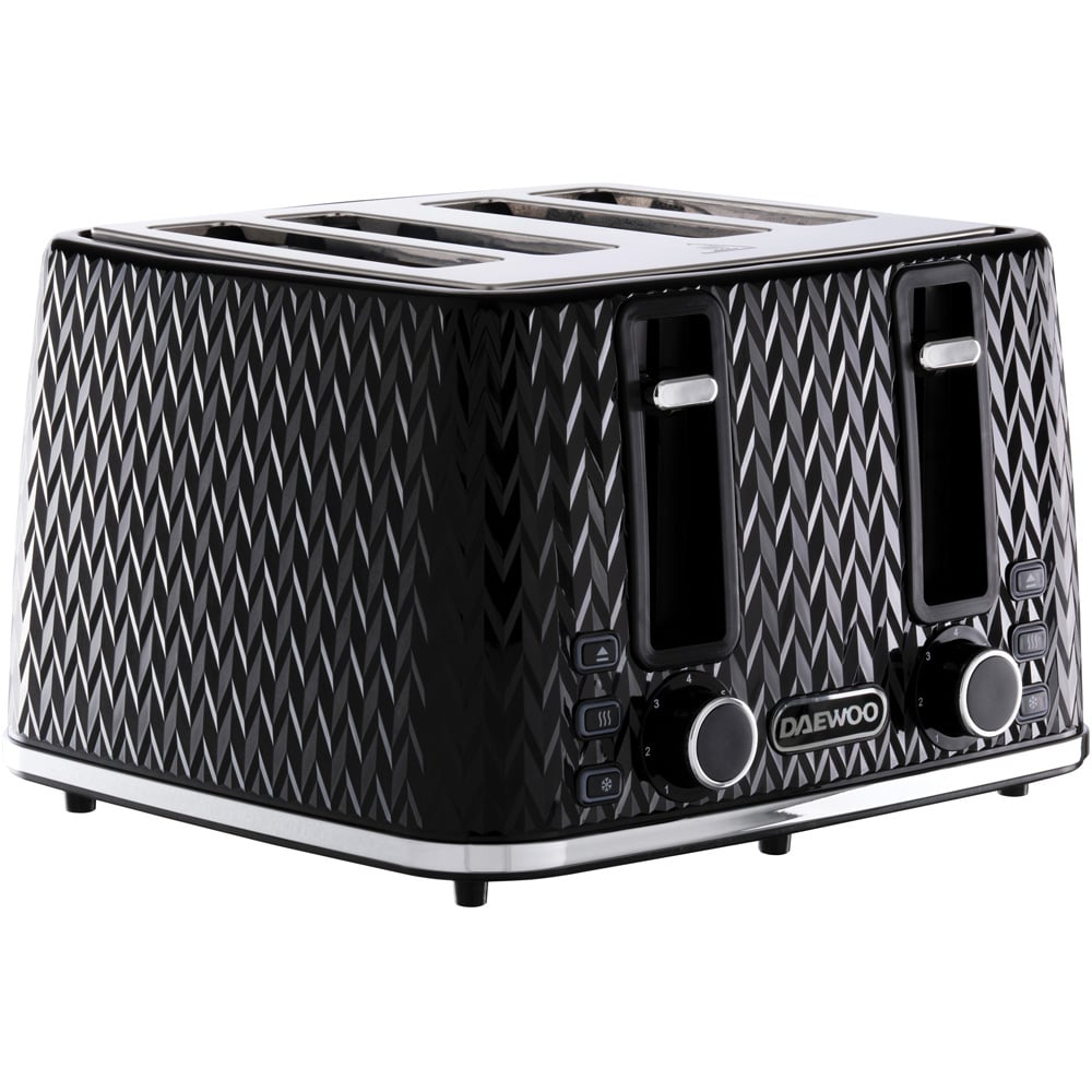 Daewoo Argyle Black 4 Slice Patterned Toaster
