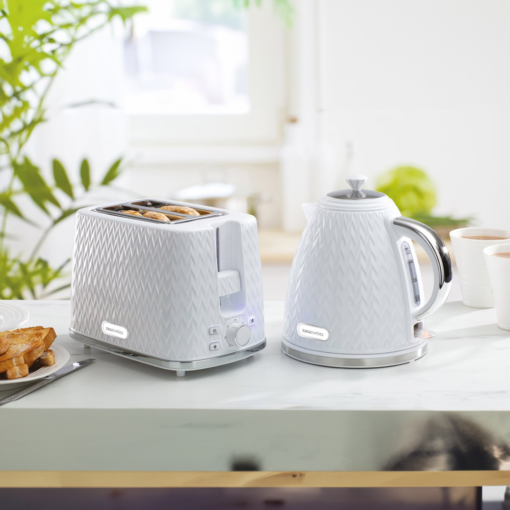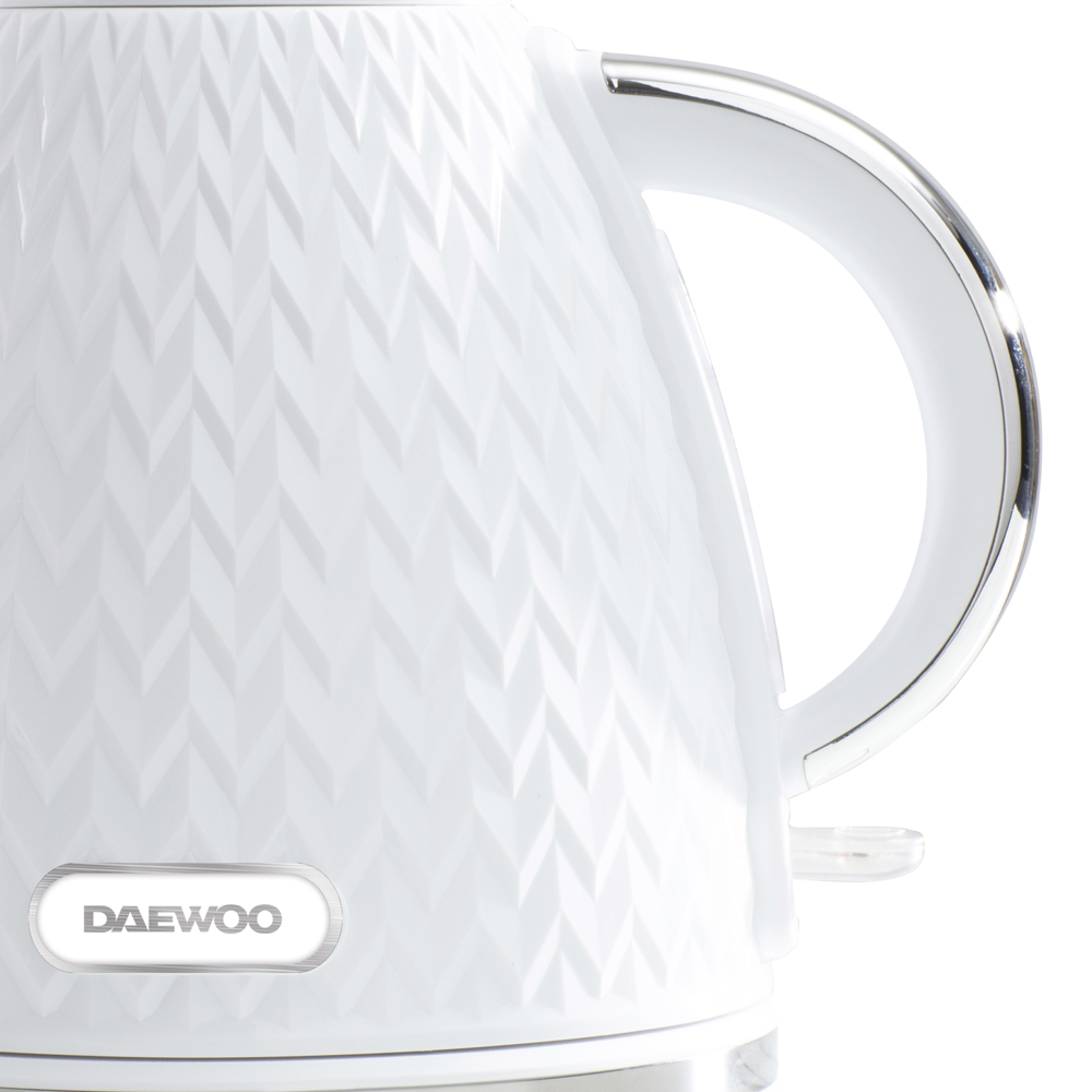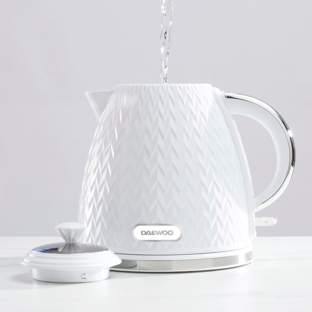 Make a convenient and efficient addition to your kitchen with the Daewoo Argyle White Jug Kettle 1.7L. It is equipped with a concealed heating element that prevents limescale build-up, ensuring the longevity of the kettle. The removable and washable limescale filter makes cleaning a breeze, eliminating any mess. Additionally, the kettle offers both auto and manual switch-off options, promoting energy-saving and safety. The LED indicator indicates when the kettle is in use. Rest assured, this product comes with a 2-year warranty for your peace of mind.