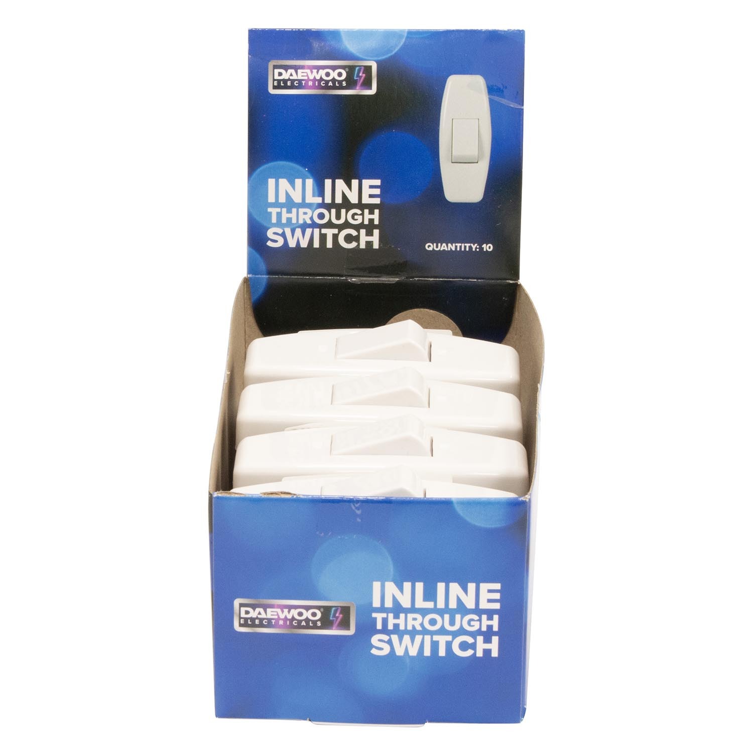This Daewoo Inline Through Switch is the perfect replacement for your lamp switch. It's sleek and lightweight, as well as easy to use. In a traditional white colour, this switch will easily match your lamp.