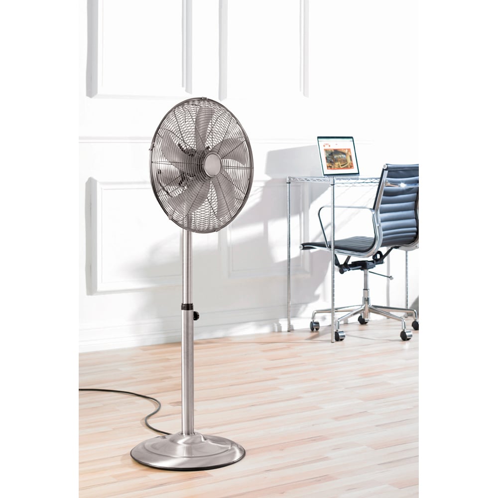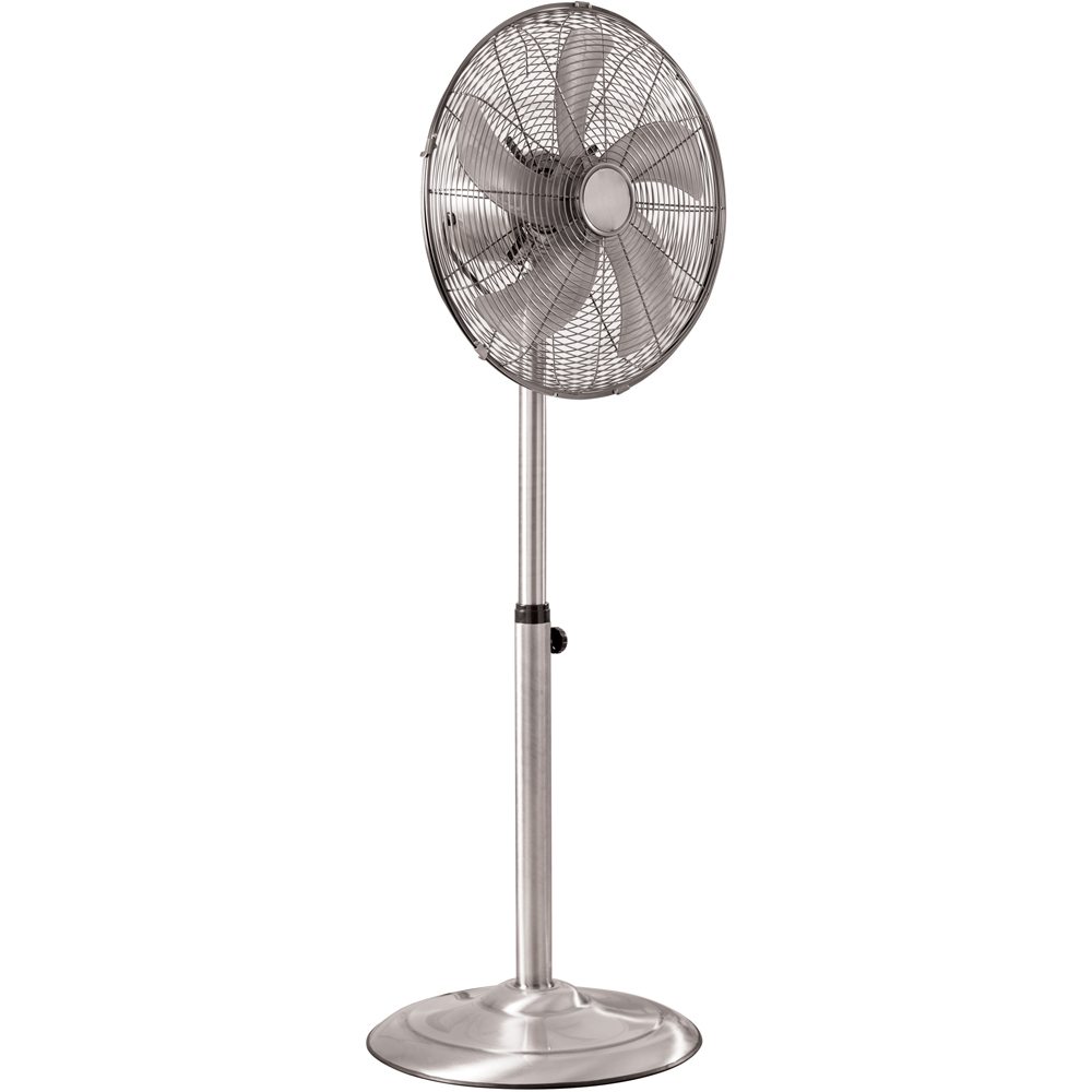 Stay cool and comfortable with the Daewoo Quiet Noise Chrome Pedestal Fan 16 inch. It offers efficient and flexible cooling with three adjustable speed settings to cater to your comfort preferences. You can customize the airflow with its adjustable height, tilt feature, and 90-degree oscillation function, ensuring widespread and personalized cooling. The anti-slip chrome base with rubber ensures stable placement, and the fan is easy to assemble for quick use. Its integrated carry handle enhances portability, and the topple-resistant base adds an extra layer of safety, making it a reliable and convenient cooling solution for various spaces. Order the pedestal fan now and enjoy a refreshing breeze in your home or office.