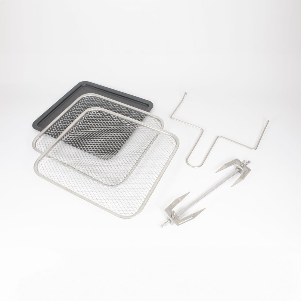 Make a stylish and versatile addition to your kitchen with the Daewoo Rotisserie Air Fryer Oven with a 12L capacity. Unlike traditional fryers, this oven does not require any oil or fats, making it a healthier option for cooking large meals. With its rotisserie function and spit attachment, you can easily roast chicken to perfection. Additionally, it comes with a special attachment for lamb and donner kebabs. The oven also includes mesh trays and a baking tray, allowing you to prepare a variety of dishes such as chips, fish, chicken breasts, red meats, pizzas, dehydrated fruits, and vegetables, as well as your favourite baked goods. Operating the Rotisserie oven is a breeze, thanks to its dial controls for temperature and time. It features a wide open door for easy access, a clear viewing window, and an interior light. The thermostatic dial control allows you to easily adjust the temperature from 80 to 200 degree Celsius, while a separate dial is provided for setting the cooking time. Additionally, the product comes with a 3-year warranty.
