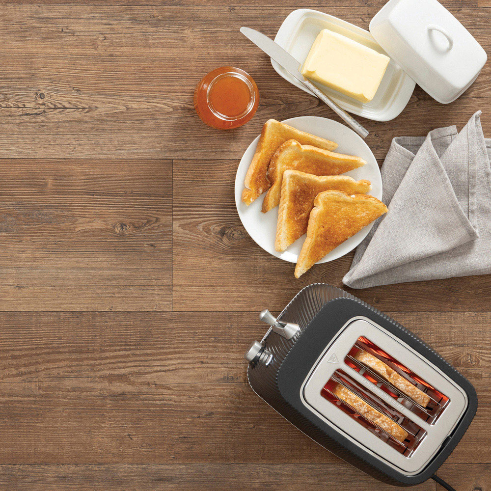 With its sleek cascade finish, this toaster adds a touch of elegance to any modern kitchen. The integrated cord storage and anti-slip feet help keep your countertops neat and stable, free from trailing wires. Designed for everyday use, the 2-slice toaster offers seven browning settings, so you can achieve the perfect toast just the way you like it. The removable crumb tray makes cleaning a breeze, while the exterior can be easily wiped down for a quick refresh. Auto self-centering guides ensure your bread is perfectly aligned for even grilling on both sides, delivering crispy, crunchy results. Plus, with handy functions like defrost, reheat, and cancel, making a fast snack has never been easier.