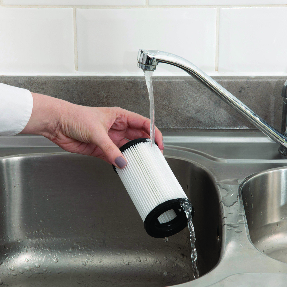 - Equipped with a washable HEPA filter