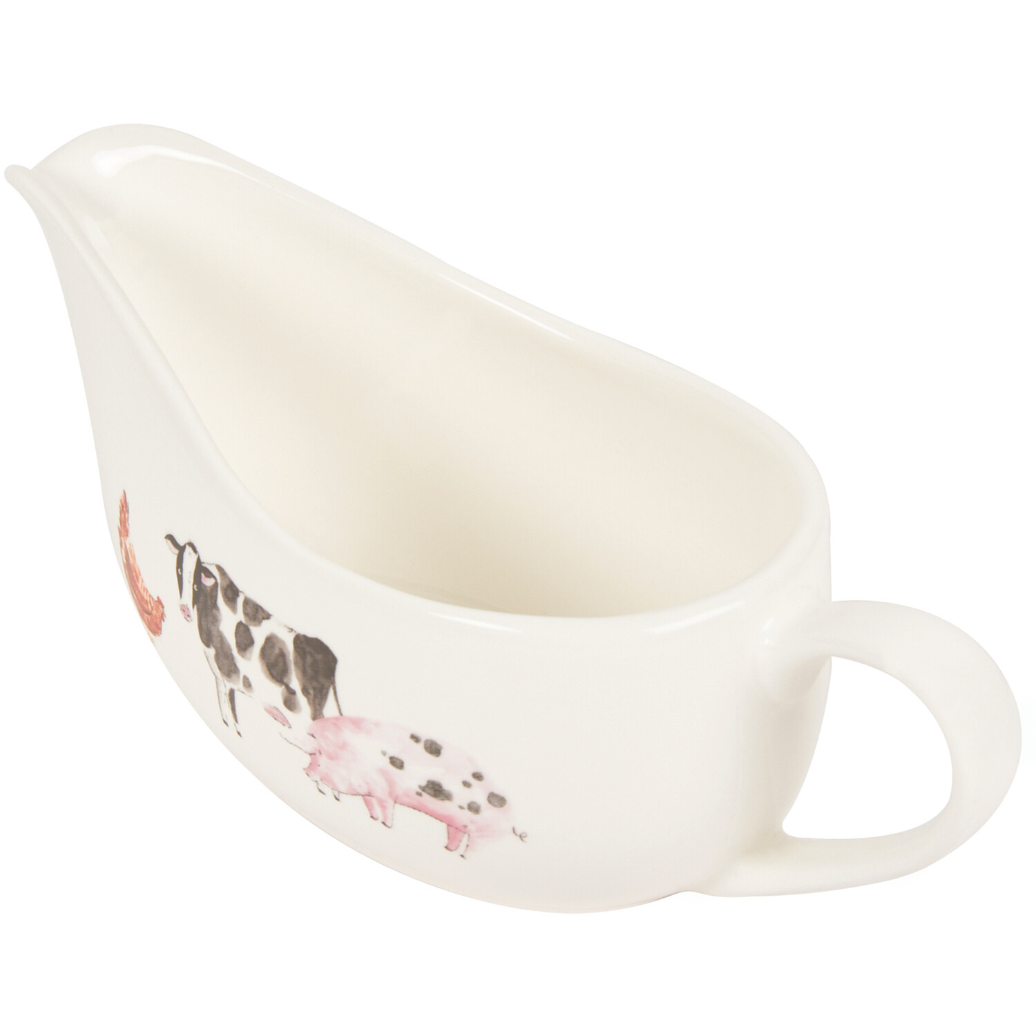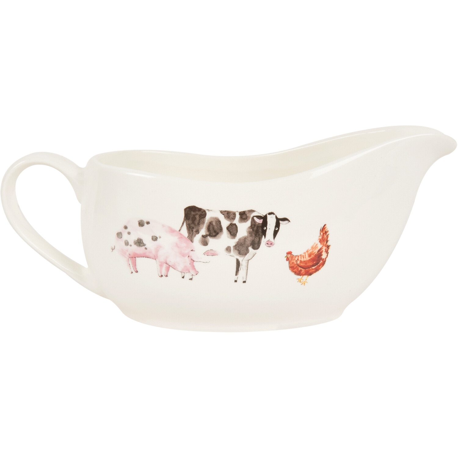 Infuse your dining table decor with country charm using the Daisy Farm Gravy Boat. Unique and adorable, this gravy boat showcases a cute design featuring farm animals. Moreover, it's perfect for pairing with other pieces from the same collection.