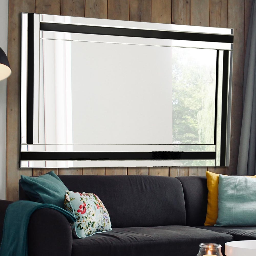 Dalton Bevelled Triple Edge Black and Silver Large Wall Mirror 144 x 115.5cm