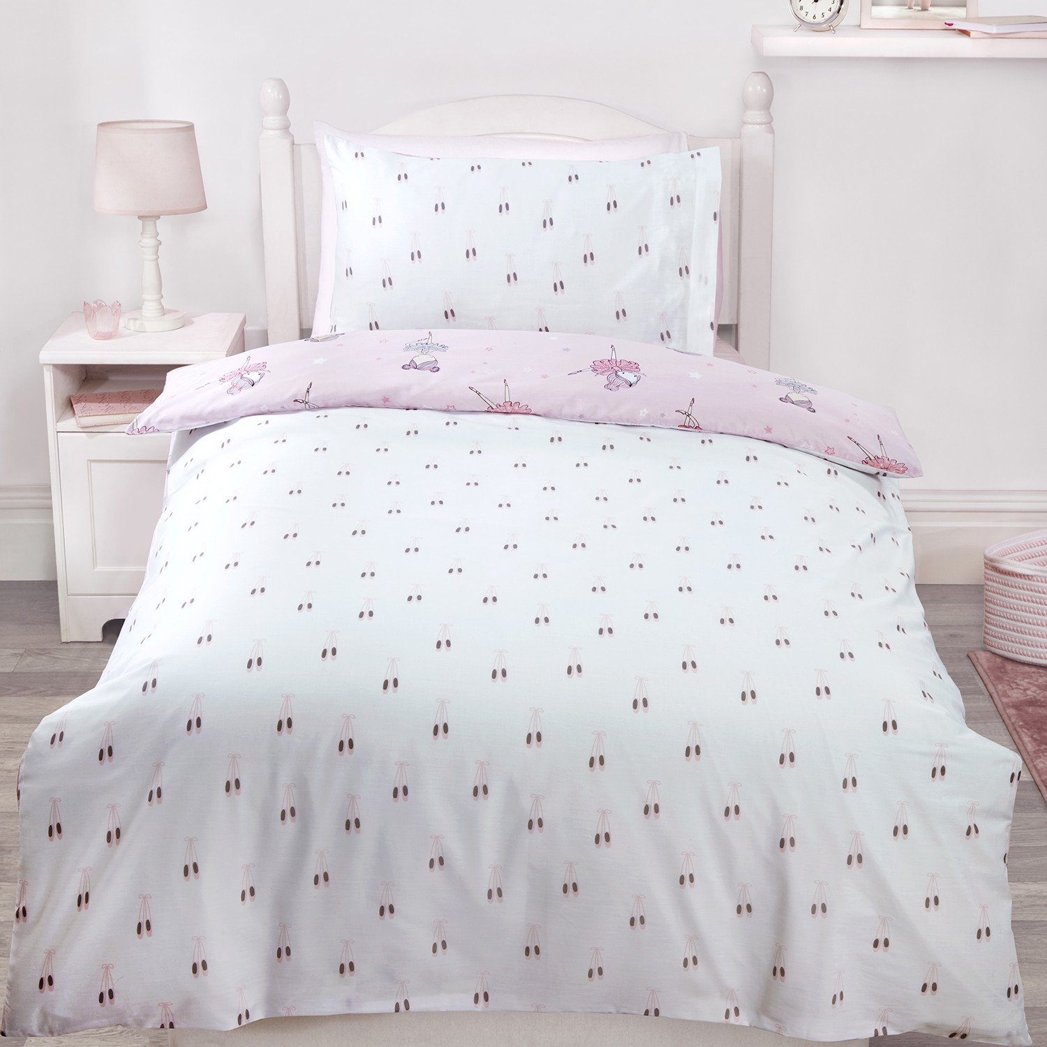 Perfect for any little ballerina in training, the Dancing Ballerinas Single Multicolour Duvet Cover Set is a sweet addition to any child's bedroom. This set features a duvet cover with a reversible design in candy pink tones - ballerinas on one side, and delicate ballet slippers on the other. Coming with a matching pillowcase that says "She leaves a little sparkle wherever she goes," your little one is sure to feel like the next prima ballerina when they snuggle under this comfortable and cosy set.
