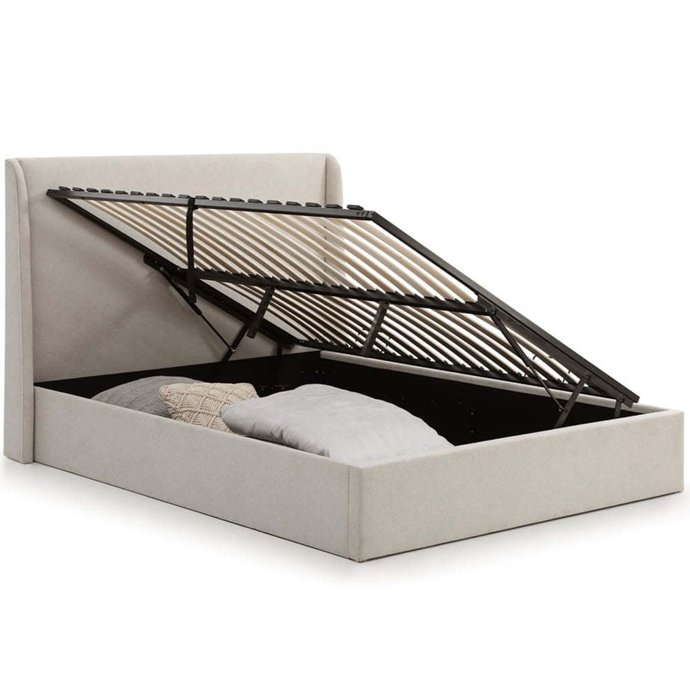 Experience ultimate luxury and comfort with the Daphne King Stone Ottoman Bed. This classy Ottoman bed provides both class and practicality with plenty of storage space. It has been upholstered using soft, textured herringbone fabric for a cosy look and feel. It features a sleek winged headboard design with a slatted base to give natural bounce, adjusting to where pressure is most exerted to provide greater comfort. It also features storage space under the slatted base that can be lifted through the side or the end for keeping your essentials. This exquisite bed is suitable for all types of traditional and modern interior spaces.