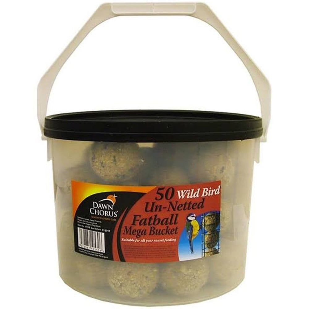 Bring life into your garden with this Dawn Chorus Wild Bird Unnetted Fatball Mega Bucket, perfect for wild birds to enjoy all year round, especially throughout colder spells. Carefully designed and formulated with the help of expert ornithologists, these fat balls are nutritious and a high-energy food source. Hang the net in your garden from string, wire, a bird feeding station or a branch and watch the birds queue up to get a great feed. Size: Pack of 50.