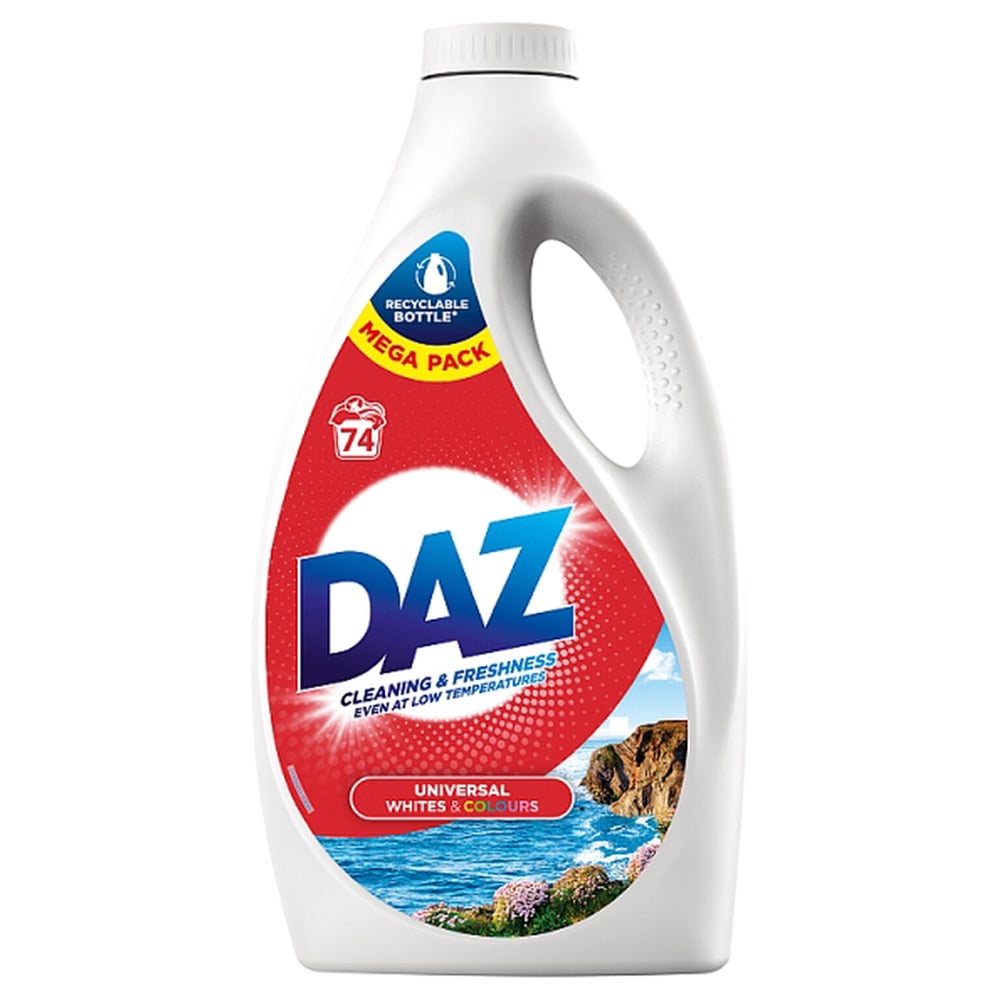 Brighten every load with the Daz Whites and Colours Liquid Laundry Detergent 74 Washes 2.442L. Designed for up to 74 washes, it tackles stubborn stains while keeping whites dazzling and colours vibrant. Even at low temperatures, it delivers a deep clean and fresh scent. It is perfect for everyday laundry that looks and smells great