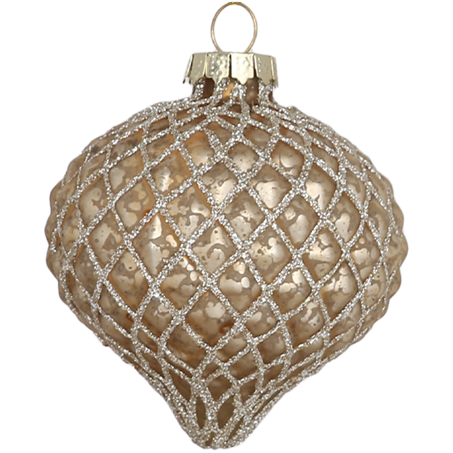 Decadent Champagne Bronze Glitter Glass Onion Bauble Single Ornament