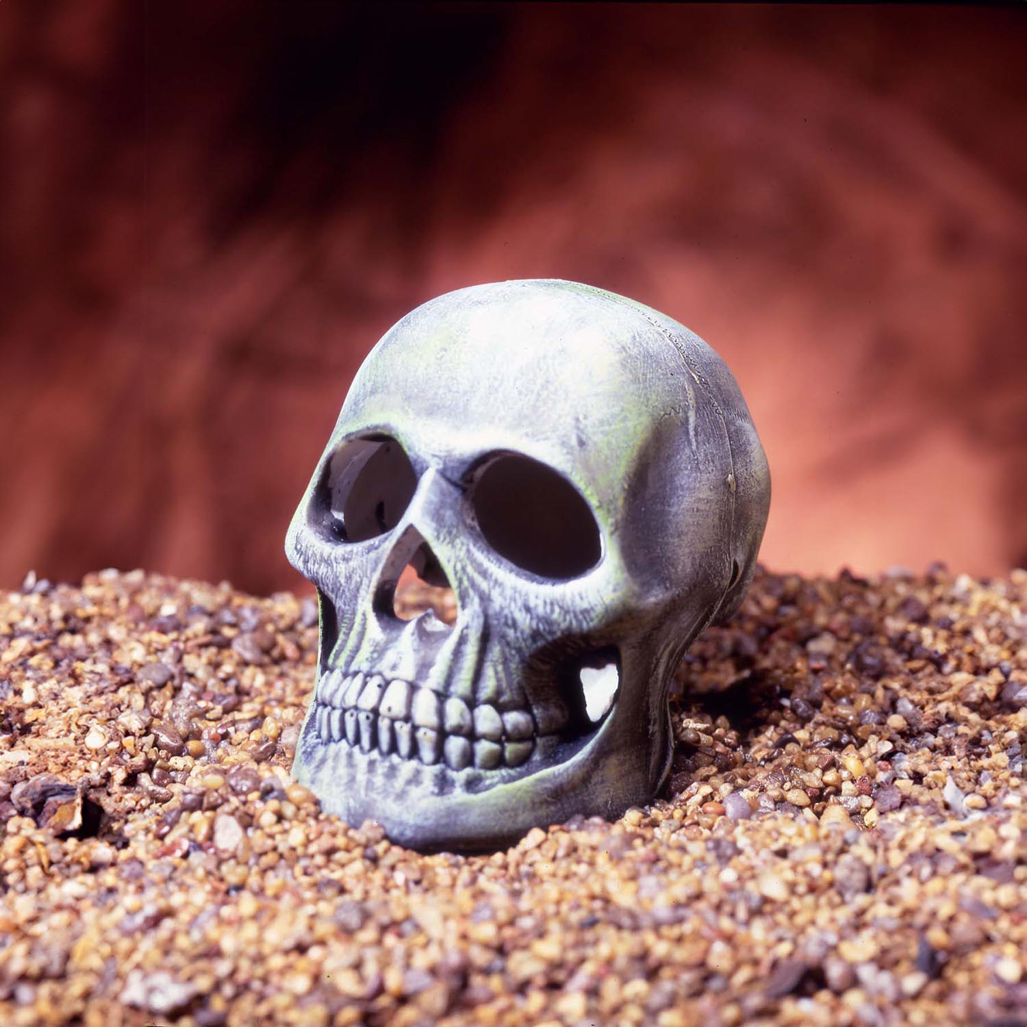 This Deco Replica Skull is a fun addition to any fish tank or reptile habitat. The realistic design will look as if it is from an old sunken pirate ship, so it's great for any nautical or shipwreck themed tanks! The incredibly detailed skull has hollows and green and purple shading to give it a more authentic and aged look.