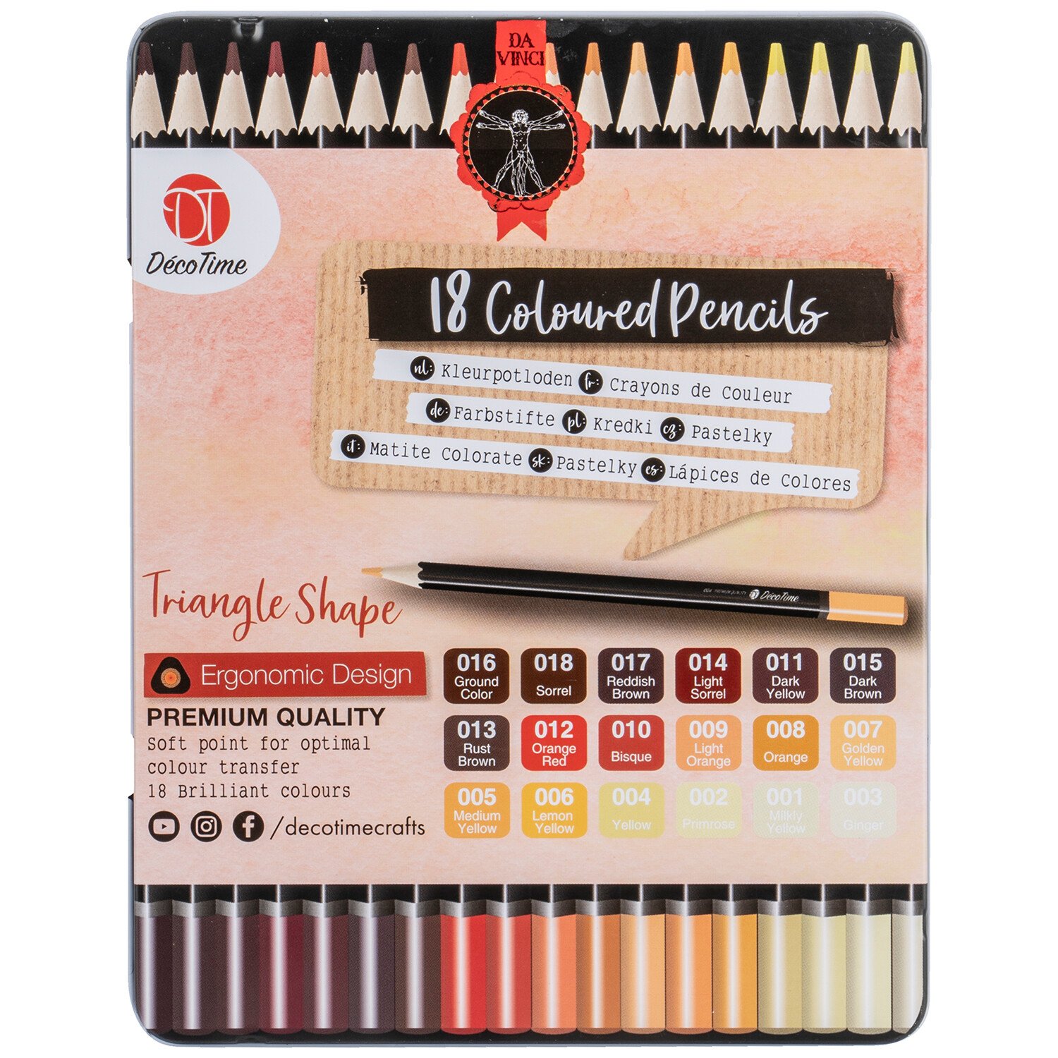The Pack of 18 Artist Colouring Pencils is the ideal collection of pencils for your stash of stationery. Featuring a soft point for optimal colour transfer, the pencils are triangular shaped for a comfortable, ergonomic design that's perfect for prolonged use. With 4 tins available, each with a specific pantone, can you collect them all?