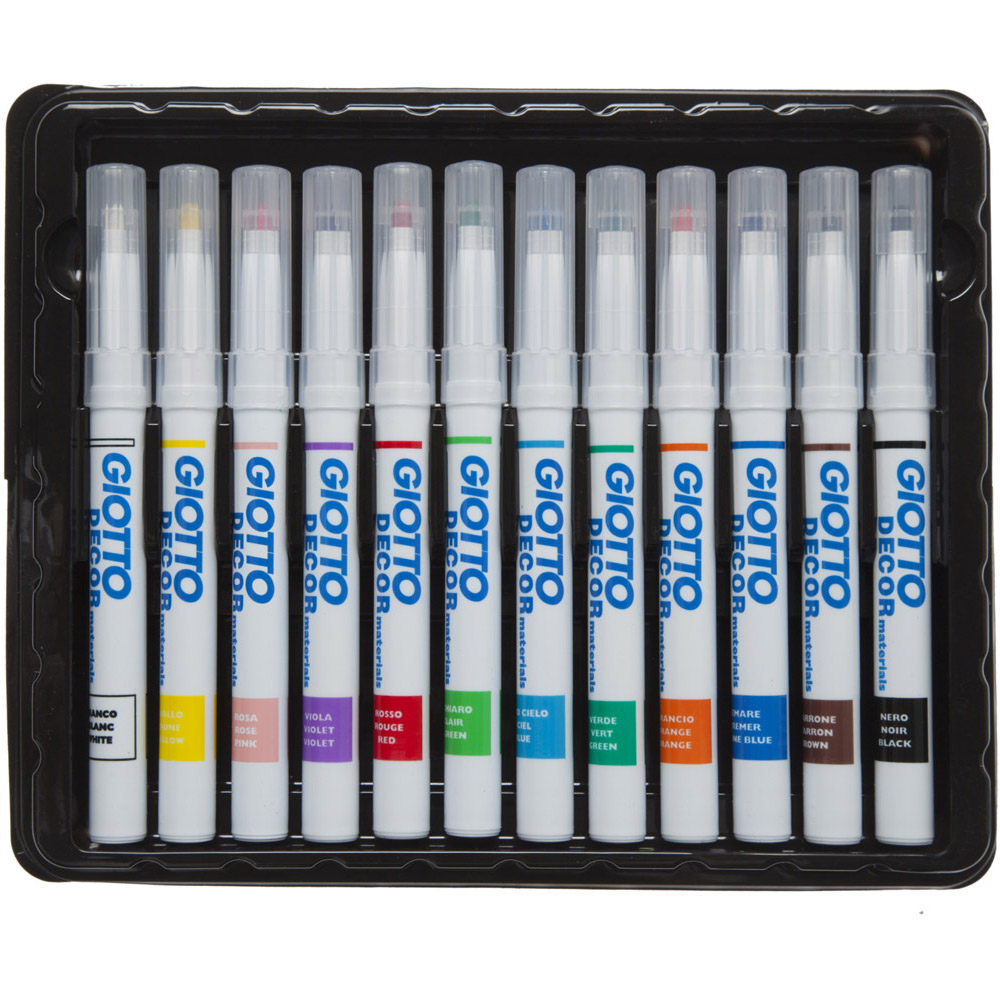 The Decor Materials Pen Pack from Giotto are perfect for writing, drawing, colouring and much more whether you're at work, home or school. These high quality water based pens, in an array of bright colours, are safe for children to use. These truly versatile bullet nib pens are ideal for decorating cardboard, wood, glass, leather, crockery, plastic, stones, clay and metals.
