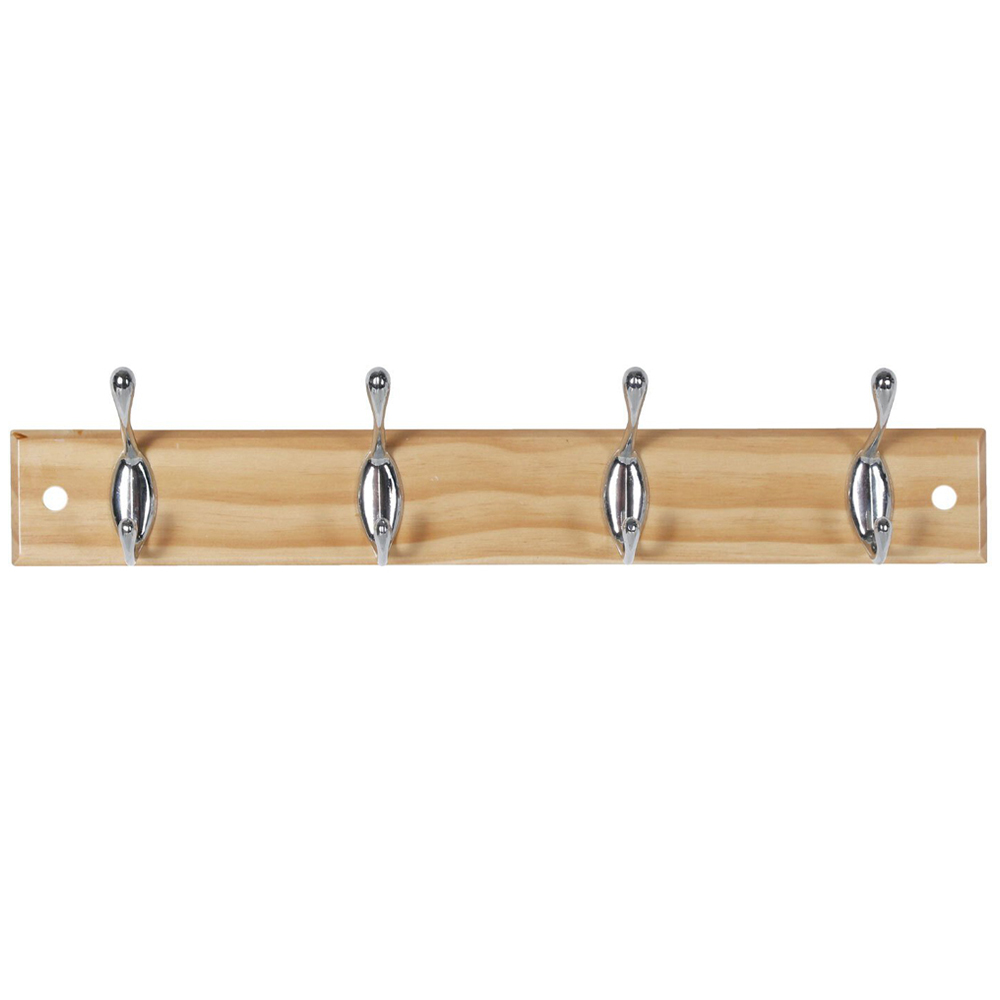 Maximise your storage in hallways, entrances, and cupboards with this 4 Hook Pine Rail. Easy to install thanks to the pre-drilled holes, this pine wood rail is a convenient way to store hats, gloves, and other clothing.