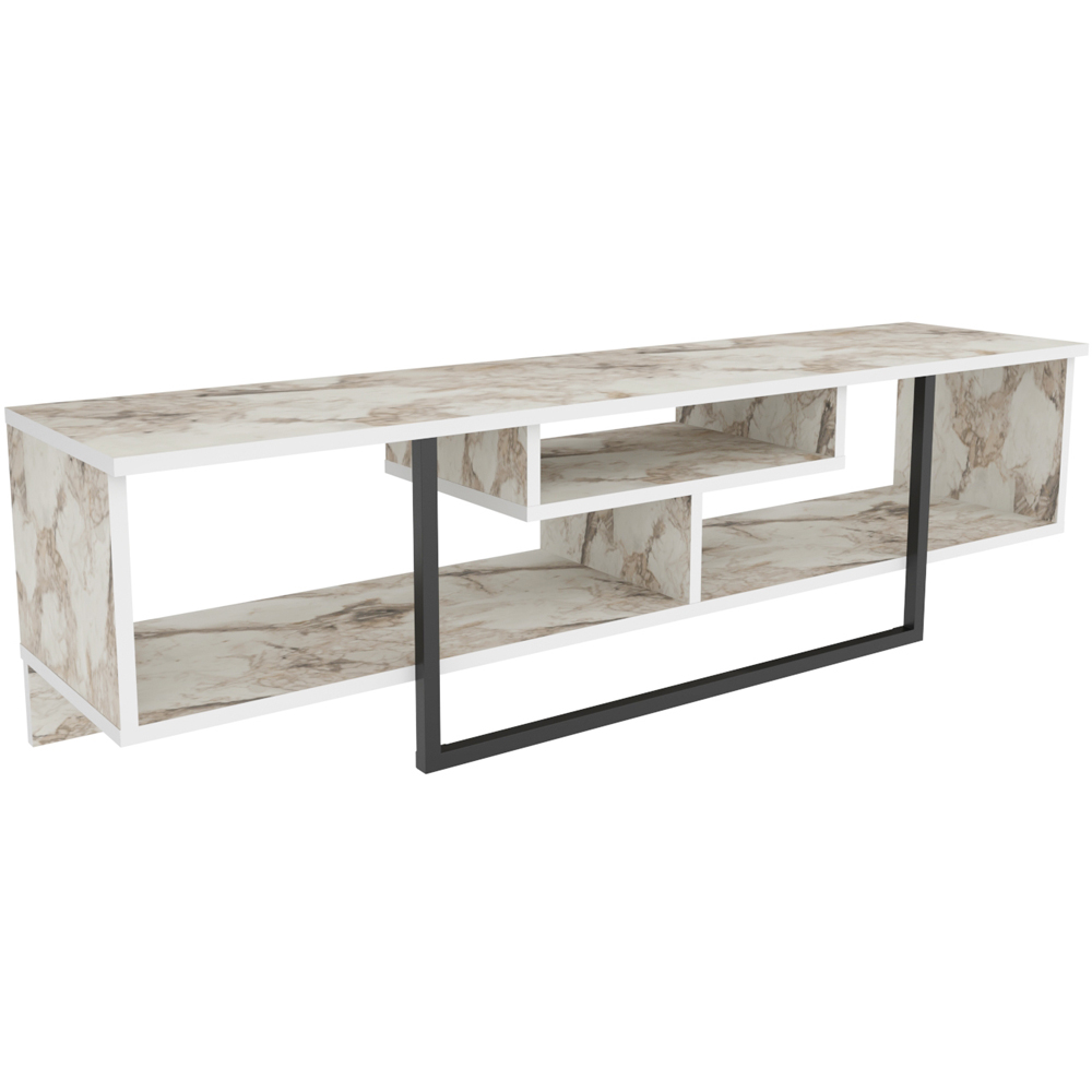 Asal simple and minimalist media stand for TVs up to 65'' is defined by practical functionality and streamlined design. Offering three stylish open shelves, it's 150 cm wide and this design includes 48 cm wide and almost 11 cm high area in its centre that’s perfect for a TV tuner, remote controller or other small media devices. Top this design with a sleek flat-screen TV, then deck out the interior open shelves with your favourite books and DVDs, framed family photos, and hurricane candles, while using the middle shelf for your new video game console and the cable box. Reversible use that both front and back sides of the stand can be used as the front side interchangeably. The media stand is made of 18 mm thick quality melamine coated particle board and banded with first-class PVC edge banding tape. The stand is also enhanced and strengthened with the front metal leg which makes it sturdy and durable. The metal part is coated with scratch and impact-resistant industrial static paint. It is manufactured using eco-friendly and health-friendly TSE-certified materials. The product will be delivered to the customer in the original package as disassembled. It is designed to be assembled by the customer easily using simple household tools like a power drill. Assembly instruction and installation hardware are included in the package. For fast and error-free installation, product parts are numbered with stickers in accordance with the assembly guide.