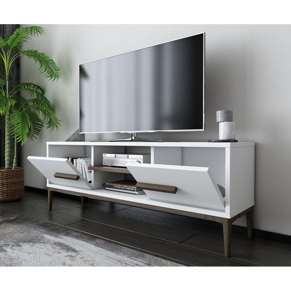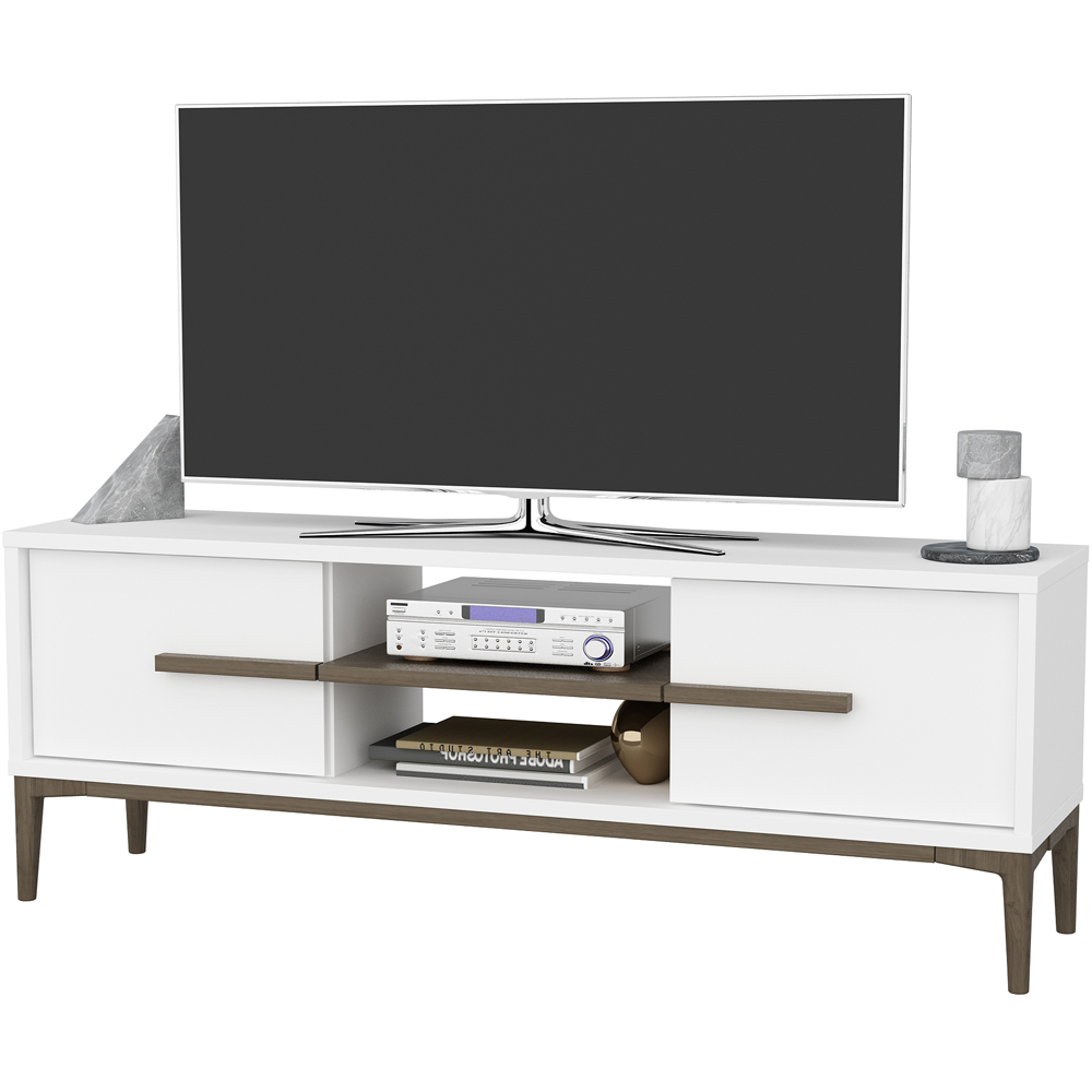 Eslem TV stand has modern and chic design. The cabinet is characterized by a combination of closed and open areas. It provides you storage with 2 open shelves and 2 cabinets for arranging DVD players, game consoles, media libraries, accessories, decorative elements and much more. Thanks to its design, you can decorate it easily. With the help of the illustrated assembly instructions included in the scope of delivery, the structure is very nice and clear. The media stand is made of 18mm thick quality melamine coated particle board and banded with first-class PVC edge banding tape and is 120 cm wide. It is manufactured using eco-friendly and health-friendly TSE certified materials. The product will be delivered to the customer in the original package as disassembled. It is designed to be assembled by the customer easily using simple household tools like a power drill. Assembly instruction and installation hardware are included in the package. For fast and error-free installation, product parts are numbered with stickers in accordance with the assembly guide