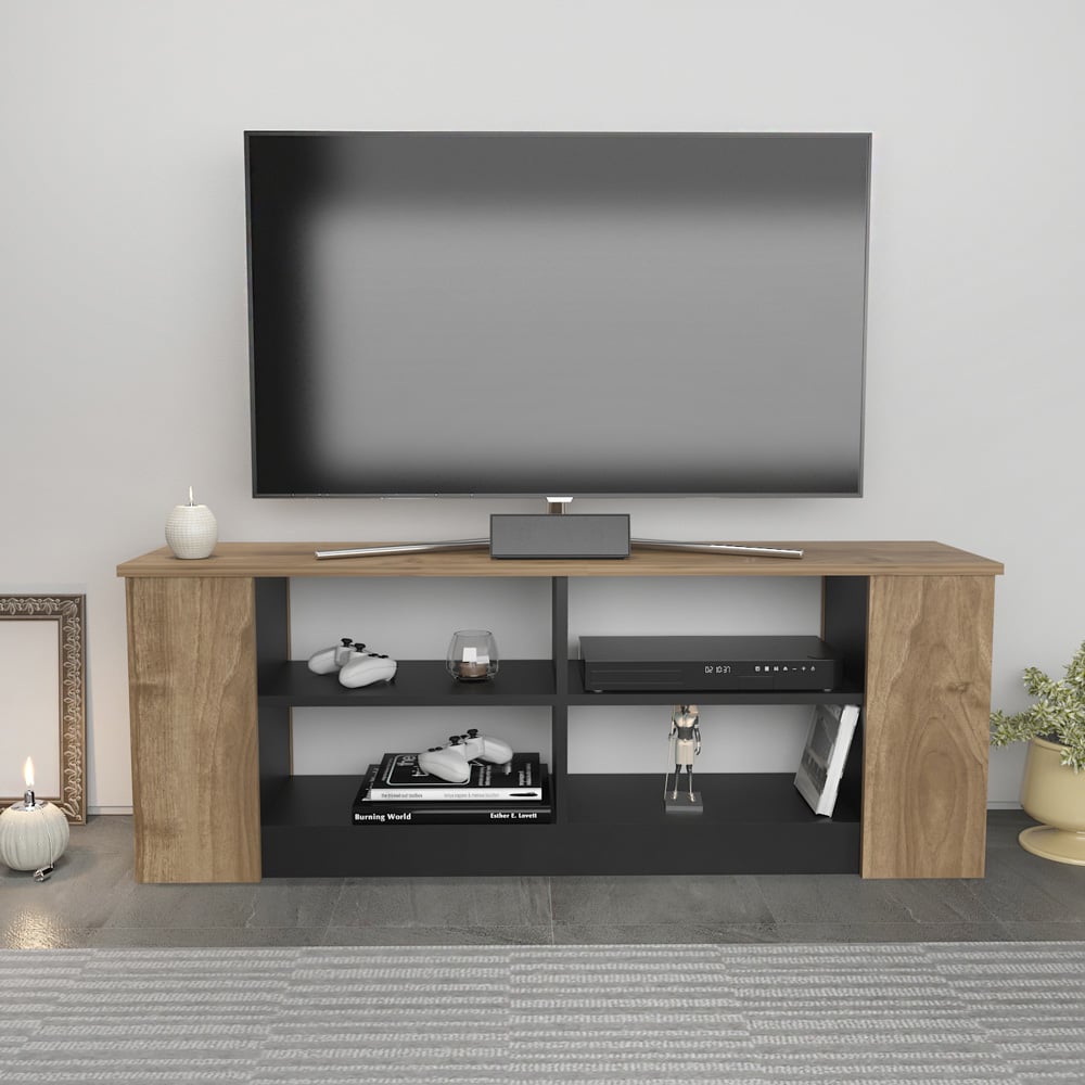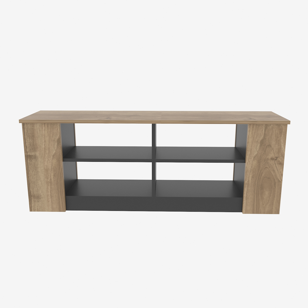 Space TV Stand and media console for TVs up to 55 inch, has a modern design. Its geometric appearance adds a contemporary look to your home. Its multi-shelf design provides storage for your books, magazines, CDs, your belongings, home accessories, etc with 140cm wide. Thanks to its design and colour options, it is a unique piece that will suit everyone's home. The TV stand is made of 18mm thick quality melamine coated particle board and banded with first-class PVC edge banding tape. It is manufactured using eco-friendly and health-friendly TSE certified materials. The product will be delivered to the customer in the original package as disassembled. It is designed to be assembled by the customer easily using simple household tools like a power drill. Assembly instruction and installation hardware are included in the package. For fast and error-free installation, product parts are numbered with stickers in accordance with the assembly guide.