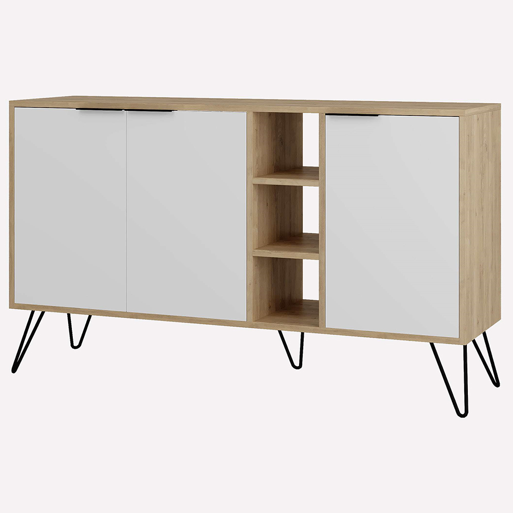 Elevate your home with the Decortie Clara Sideboard, a perfect blend of functionality and style. This unique cabinet offers generous storage space, with an interior shelf in each compartment to help keep your items organized. Designed with durable engineered wood and a protective melamine finish, it ensures long-lasting use and easy maintenance. The sturdy hairpin metal legs provide stability while adding a contemporary touch to your decor. Measuring 142 x 36 x 83 cm, this console unit fits effortlessly into various spaces, making it a stylish and practical addition to your home.