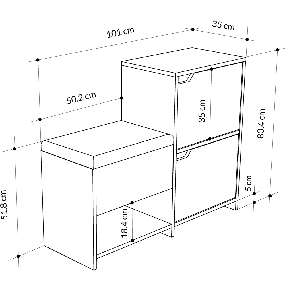 Step into organised living with a stair-shaped bench, making every entryway both practical and inviting. Engineered from robust 18mm wood, the bench features a comfortable fabric seat, two-door cupboard storage, and an open shelf below for shoes or essentials. The clever design maximises space and brings a fresh look to homes, doubling as a handy seat for your daily routine. Whether placed in the hallway or entryway, it keeps clutter at bay and adds a contemporary flair with its oak and grey finish.